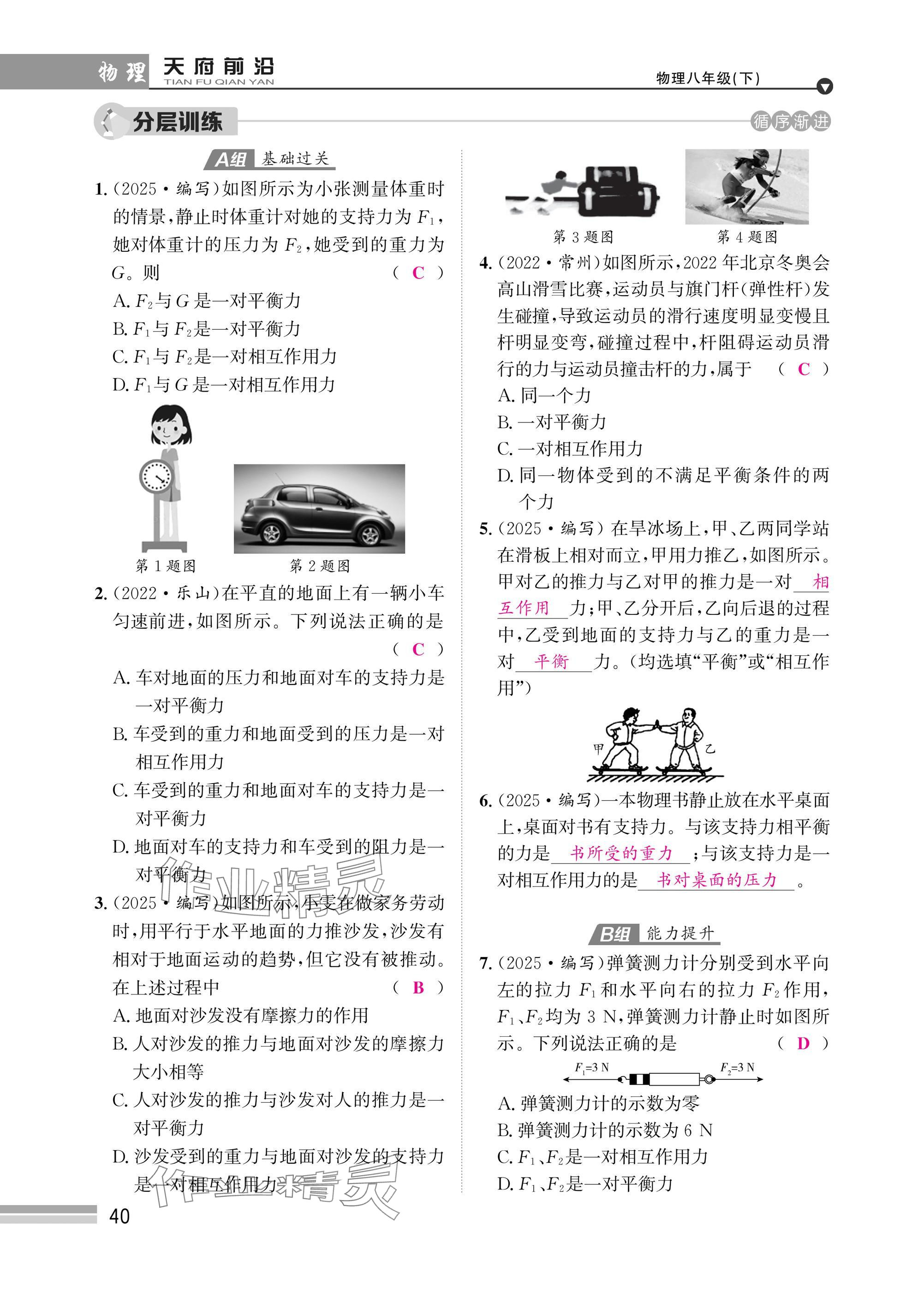 注:目前有些书本章节名称可能整理的还不是很完善,但都是按照顺序排列的,请同学们按照顺序仔细查找。练习册 2025年天府前沿八年级物理下册教科版 答案主要是用来给同学们做完题方便对答案用的,请勿直接抄袭。