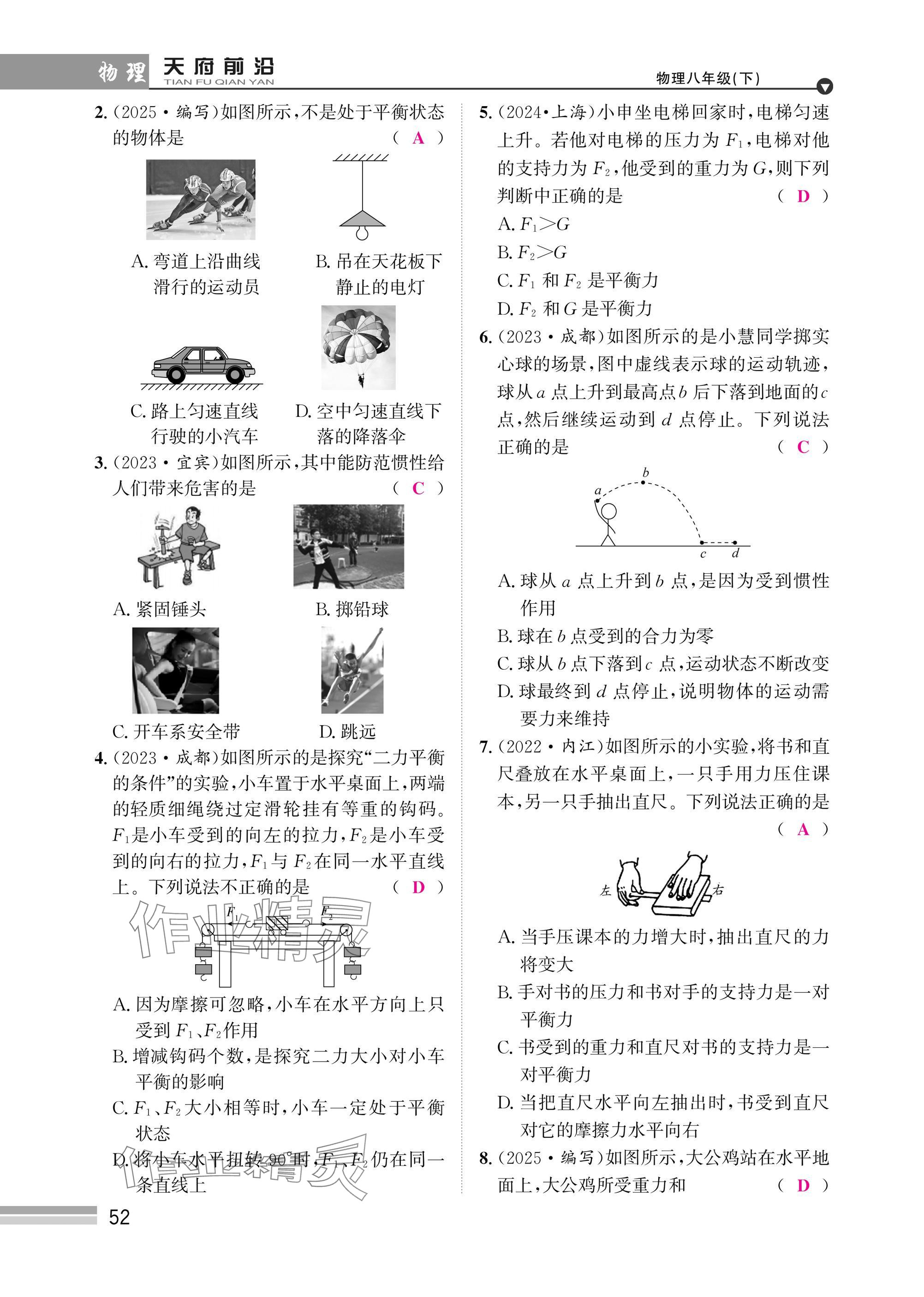 注:目前有些书本章节名称可能整理的还不是很完善,但都是按照顺序排列的,请同学们按照顺序仔细查找。练习册 2025年天府前沿八年级物理下册教科版 答案主要是用来给同学们做完题方便对答案用的,请勿直接抄袭。