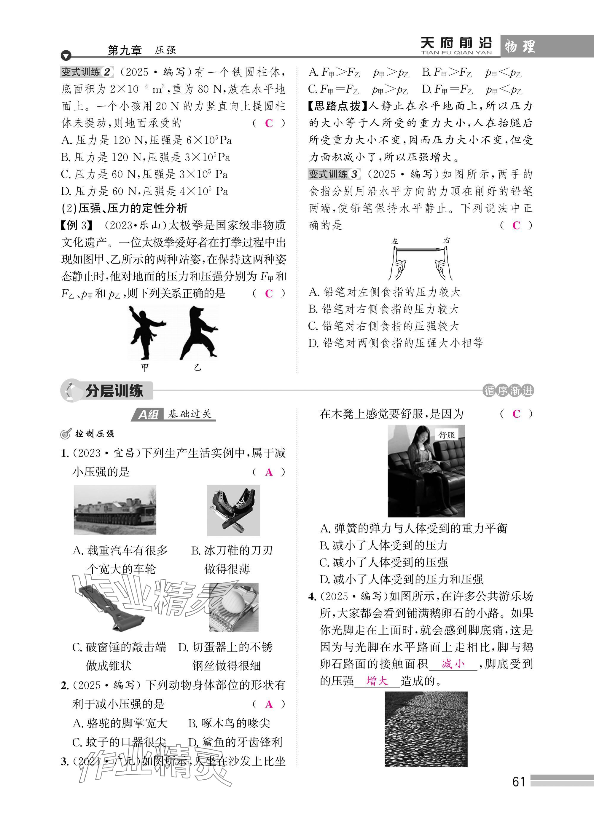 注:目前有些书本章节名称可能整理的还不是很完善,但都是按照顺序排列的,请同学们按照顺序仔细查找。练习册 2025年天府前沿八年级物理下册教科版 答案主要是用来给同学们做完题方便对答案用的,请勿直接抄袭。