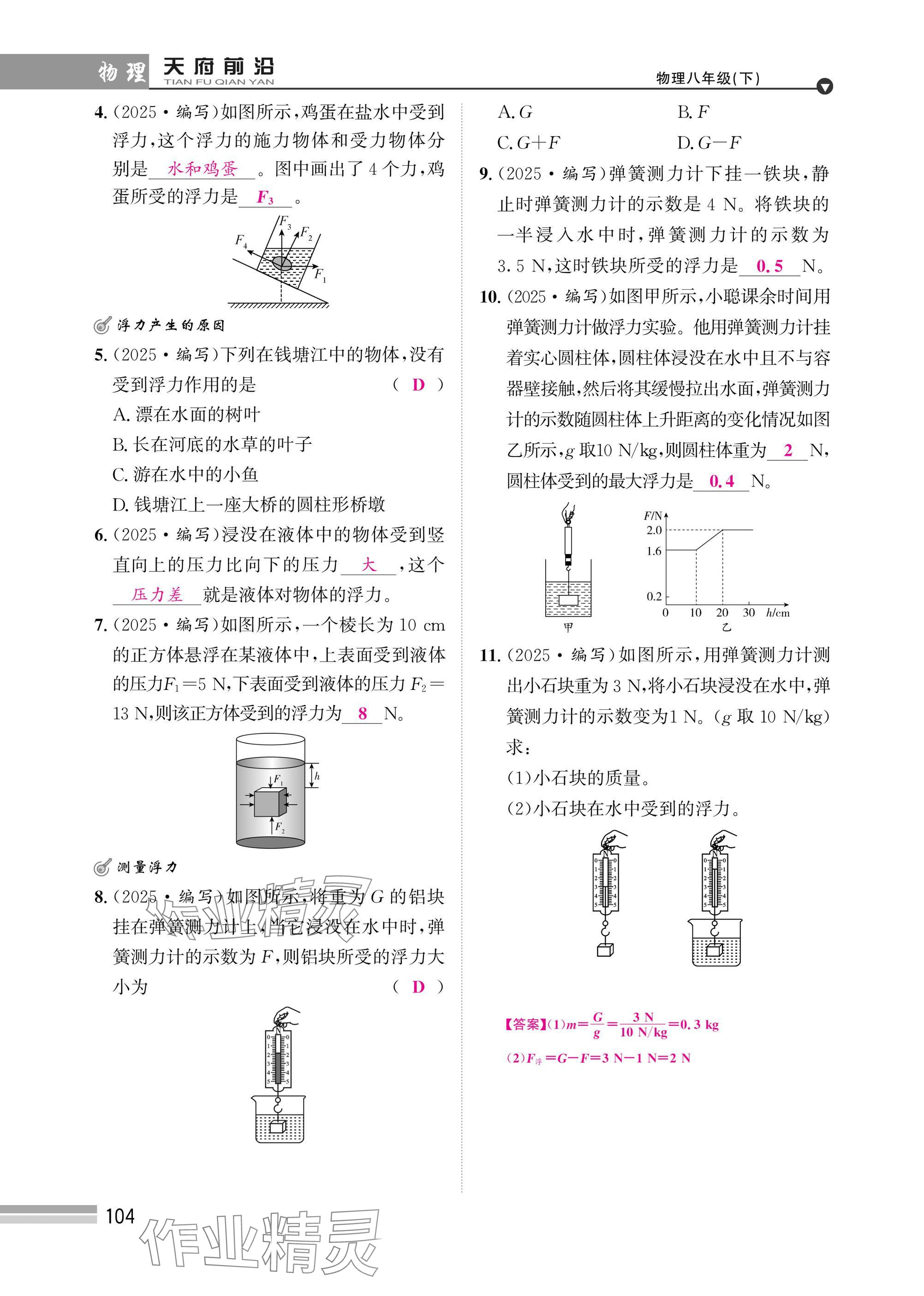 注:目前有些书本章节名称可能整理的还不是很完善,但都是按照顺序排列的,请同学们按照顺序仔细查找。练习册 2025年天府前沿八年级物理下册教科版 答案主要是用来给同学们做完题方便对答案用的,请勿直接抄袭。