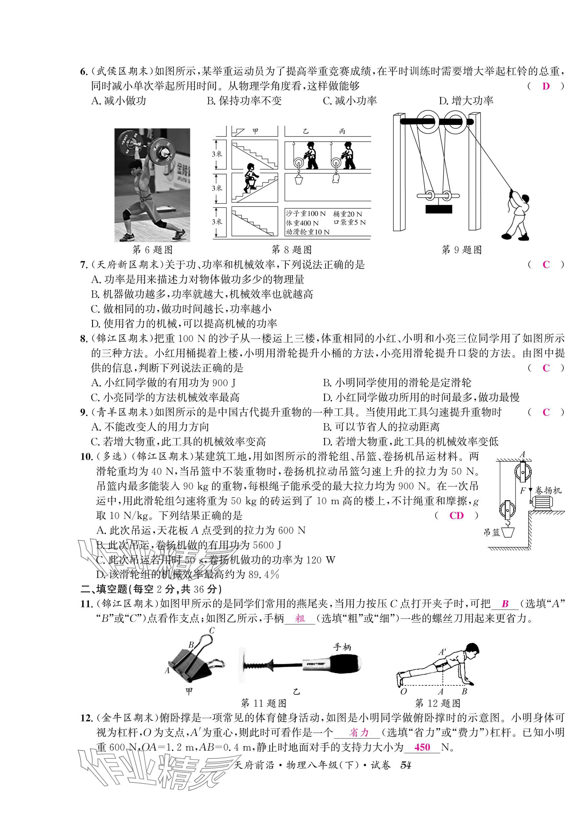 注:目前有些书本章节名称可能整理的还不是很完善,但都是按照顺序排列的,请同学们按照顺序仔细查找。练习册 2025年天府前沿八年级物理下册教科版 答案主要是用来给同学们做完题方便对答案用的,请勿直接抄袭。