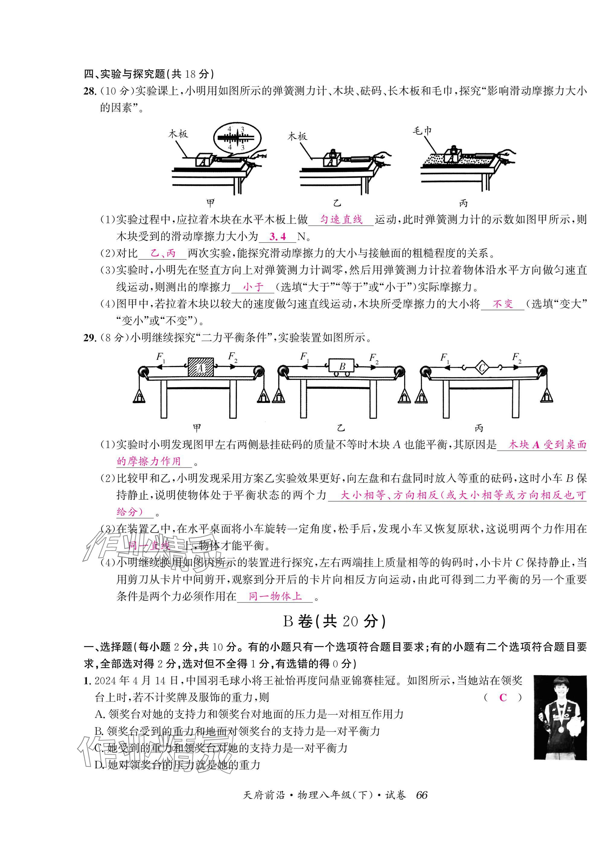 注:目前有些书本章节名称可能整理的还不是很完善,但都是按照顺序排列的,请同学们按照顺序仔细查找。练习册 2025年天府前沿八年级物理下册教科版 答案主要是用来给同学们做完题方便对答案用的,请勿直接抄袭。