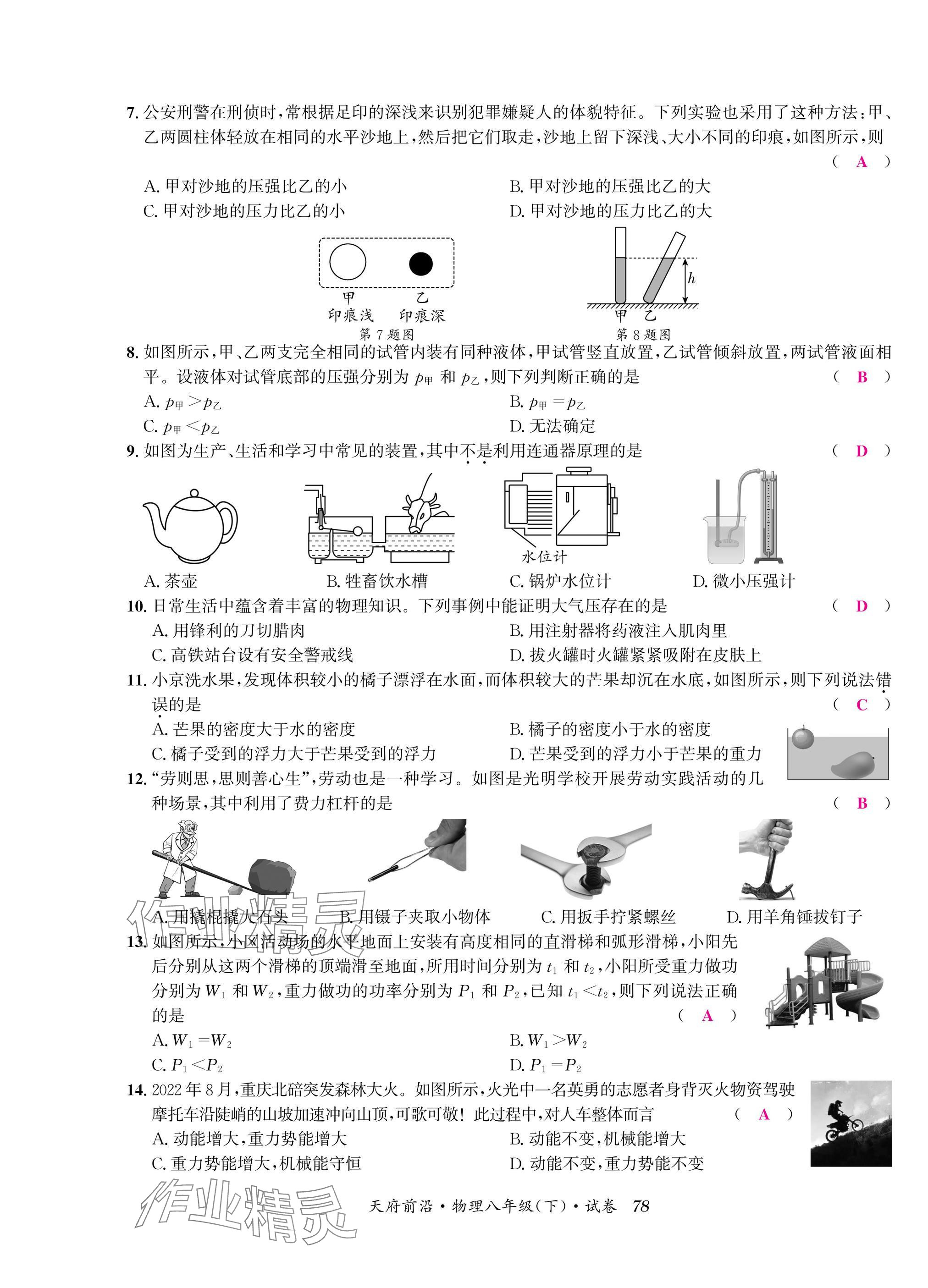 注:目前有些书本章节名称可能整理的还不是很完善,但都是按照顺序排列的,请同学们按照顺序仔细查找。练习册 2025年天府前沿八年级物理下册教科版 答案主要是用来给同学们做完题方便对答案用的,请勿直接抄袭。