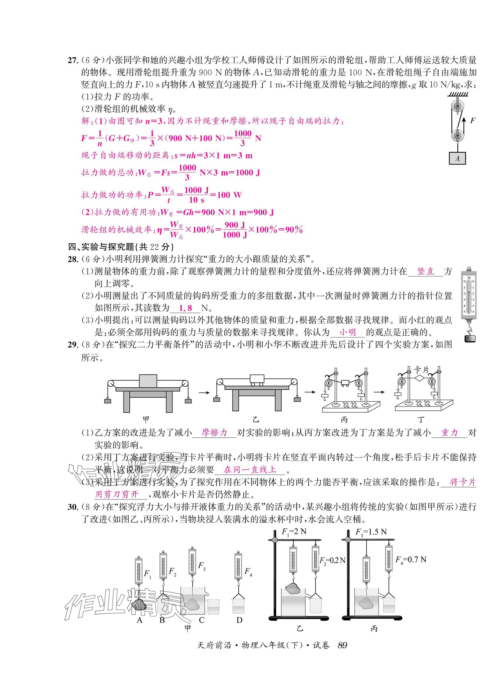 注:目前有些书本章节名称可能整理的还不是很完善,但都是按照顺序排列的,请同学们按照顺序仔细查找。练习册 2025年天府前沿八年级物理下册教科版 答案主要是用来给同学们做完题方便对答案用的,请勿直接抄袭。