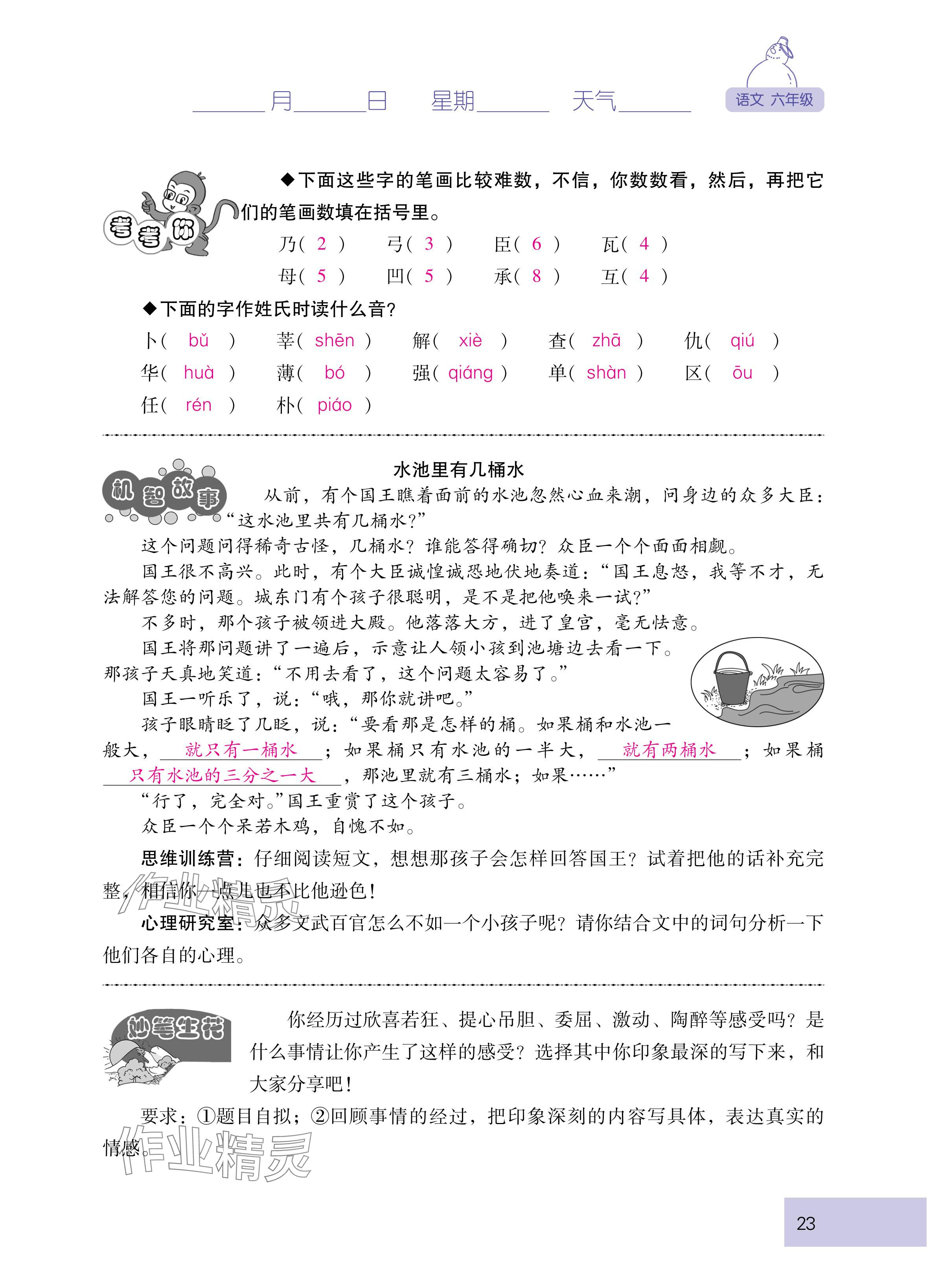 2025年云南省标准教辅寒假活动六年级语文人教版