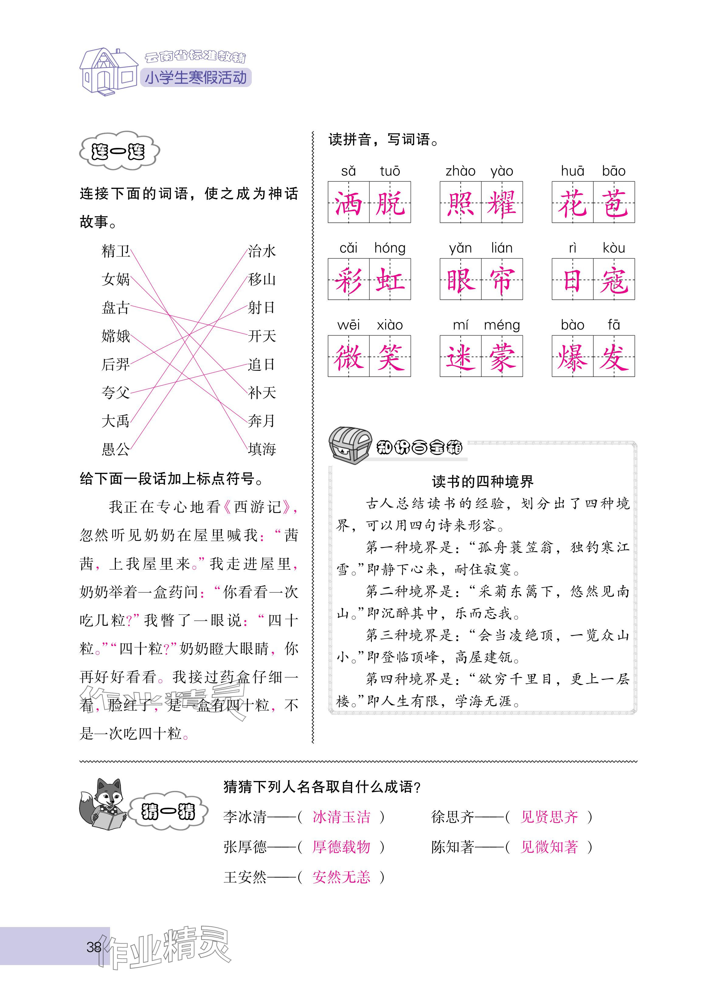 注:目前有些书本章节名称可能整理的还不是很完善,但都是按照顺序排列的,请同学们按照顺序仔细查找。练习册 2025年云南省标准教辅寒假活动六年级语文人教版 答案主要是用来给同学们做完题方便对答案用的,请勿直接抄袭。