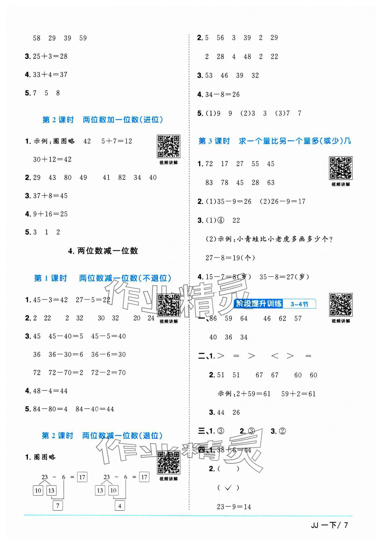 注:目前有些书本章节名称可能整理的还不是很完善,但都是按照顺序排列的,请同学们按照顺序仔细查找。练习册 2025年阳光同学课时优化作业一年级数学下册冀教版 答案主要是用来给同学们做完题方便对答案用的,请勿直接抄袭。