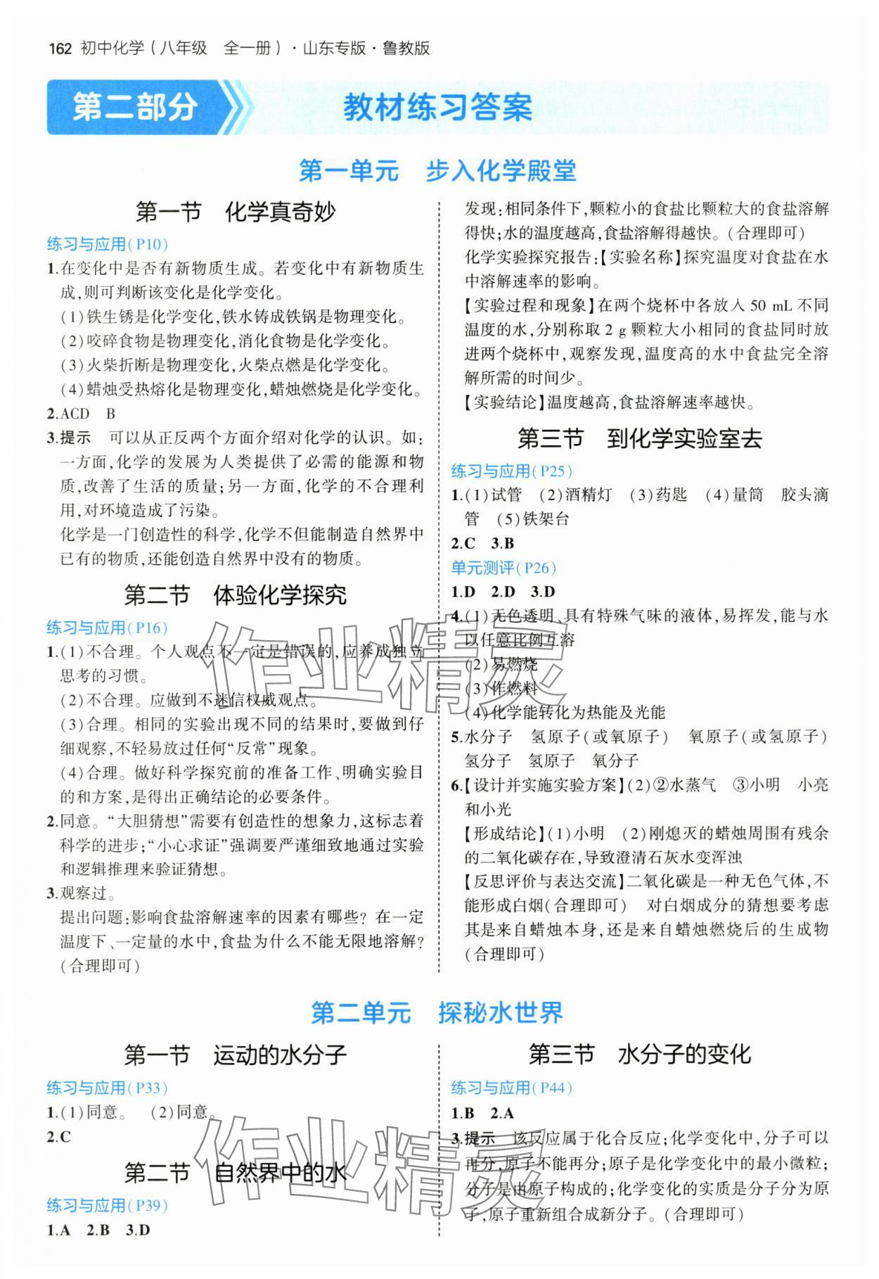 注:目前有些书本章节名称可能整理的还不是很完善,但都是按照顺序排列的,请同学们按照顺序仔细查找。练习册 2025年5年中考3年模拟八年级化学全一册鲁教版山东专版 答案主要是用来给同学们做完题方便对答案用的,请勿直接抄袭。