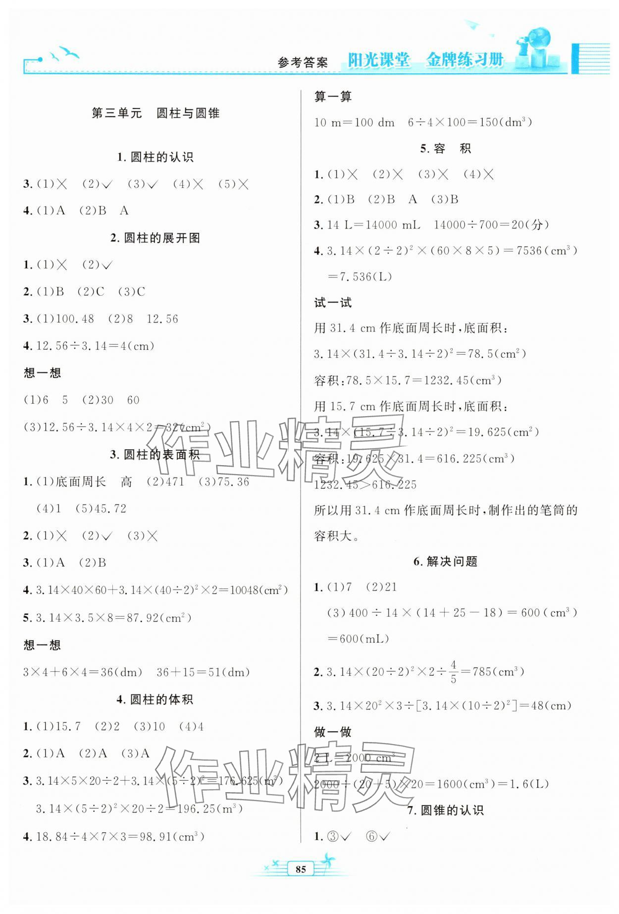 注:目前有些书本章节名称可能整理的还不是很完善,但都是按照顺序排列的,请同学们按照顺序仔细查找。练习册 2025年阳光课堂金牌练习册六年级数学下册人教版 答案主要是用来给同学们做完题方便对答案用的,请勿直接抄袭。