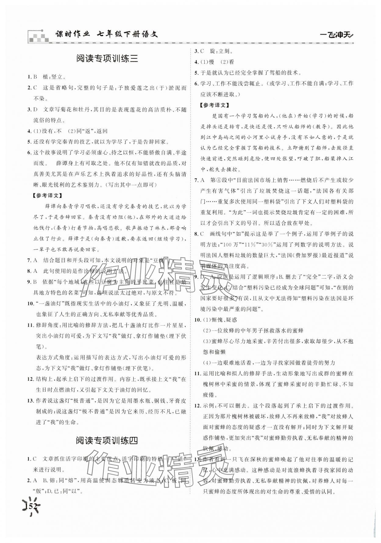 注:目前有些书本章节名称可能整理的还不是很完善,但都是按照顺序排列的,请同学们按照顺序仔细查找。练习册 2025年一飞冲天七年级语文下册人教版课时作业 答案主要是用来给同学们做完题方便对答案用的,请勿直接抄袭。