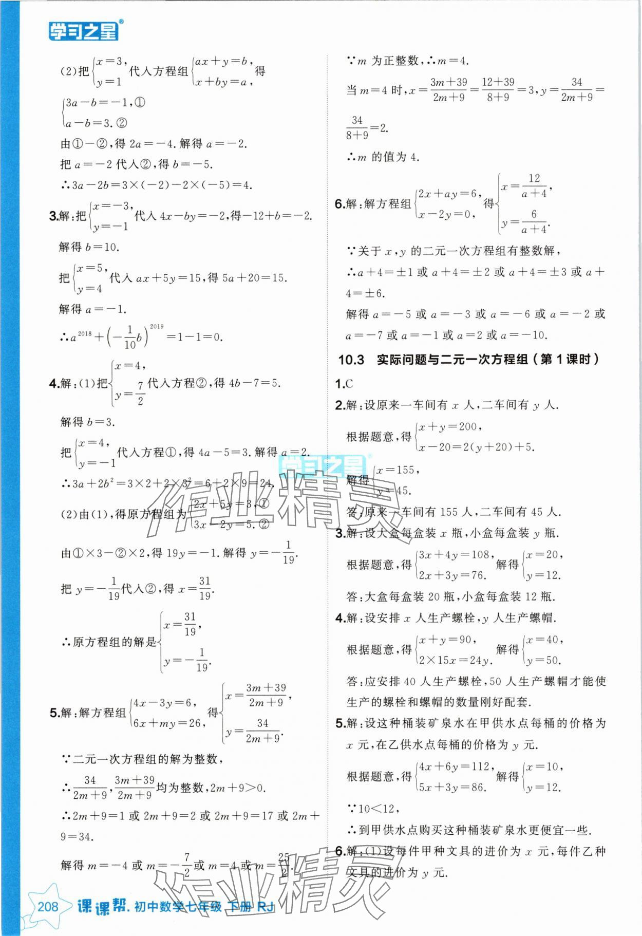 注:目前有些书本章节名称可能整理的还不是很完善,但都是按照顺序排列的,请同学们按照顺序仔细查找。练习册 2025年课课帮七年级数学下册人教版辽宁专版 答案主要是用来给同学们做完题方便对答案用的,请勿直接抄袭。