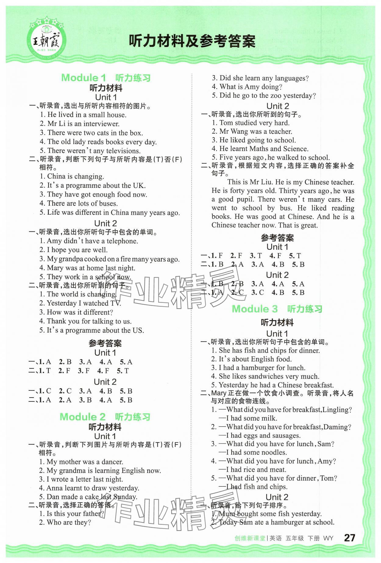 注:目前有些书本章节名称可能整理的还不是很完善,但都是按照顺序排列的,请同学们按照顺序仔细查找。练习册 2025年创维新课堂五年级英语下册外研版 答案主要是用来给同学们做完题方便对答案用的,请勿直接抄袭。