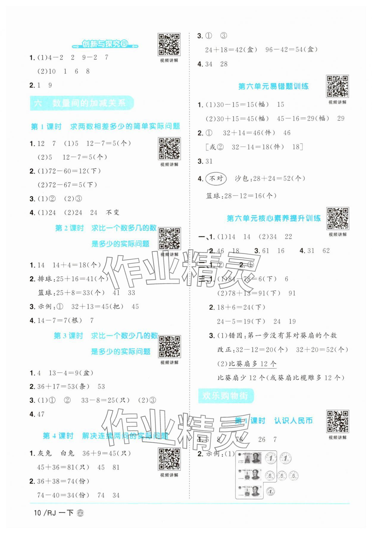 注:目前有些书本章节名称可能整理的还不是很完善,但都是按照顺序排列的,请同学们按照顺序仔细查找。练习册 2025年阳光同学课时优化作业一年级数学下册人教版广东专版 答案主要是用来给同学们做完题方便对答案用的,请勿直接抄袭。