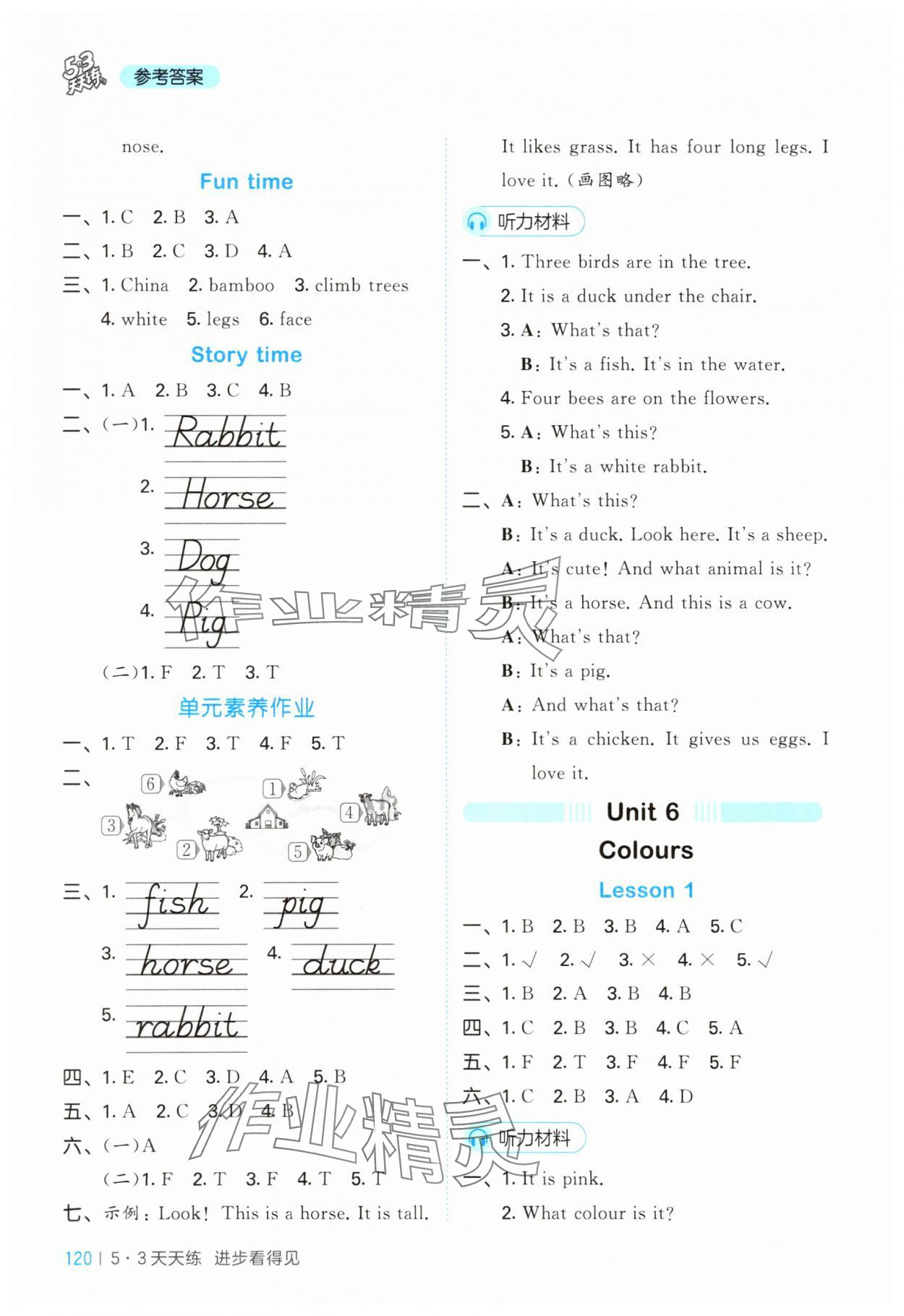 注:目前有些书本章节名称可能整理的还不是很完善,但都是按照顺序排列的,请同学们按照顺序仔细查找。练习册 2025年53天天练三年级英语下册人教精通版 答案主要是用来给同学们做完题方便对答案用的,请勿直接抄袭。