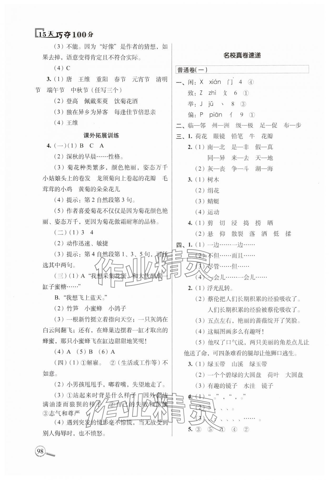 注:目前有些书本章节名称可能整理的还不是很完善,但都是按照顺序排列的,请同学们按照顺序仔细查找。练习册 2025年15天巧夺100分三年级语文下册人教版 答案主要是用来给同学们做完题方便对答案用的,请勿直接抄袭。