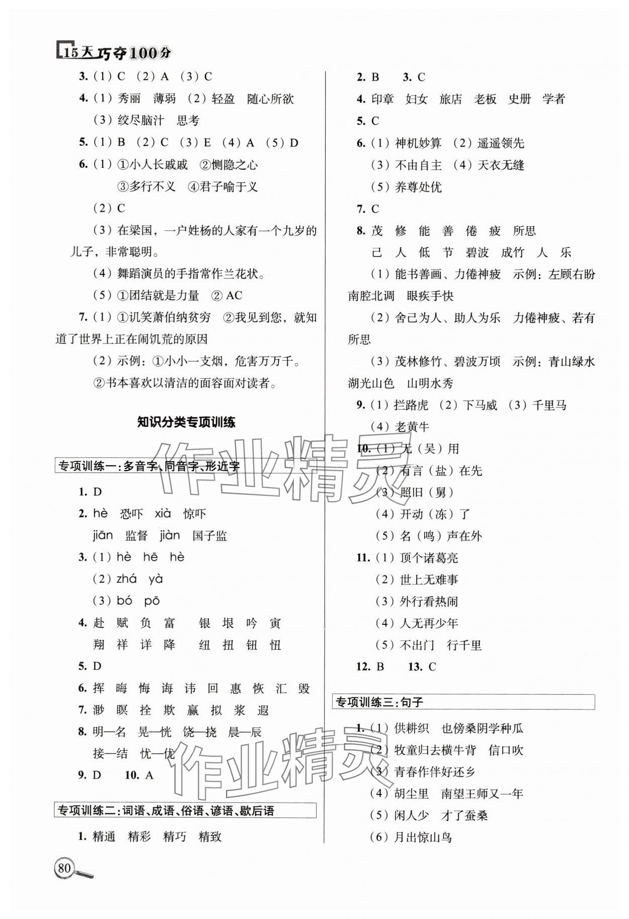 注:目前有些书本章节名称可能整理的还不是很完善,但都是按照顺序排列的,请同学们按照顺序仔细查找。练习册 2025年15天巧夺100分五年级语文下册人教版 答案主要是用来给同学们做完题方便对答案用的,请勿直接抄袭。