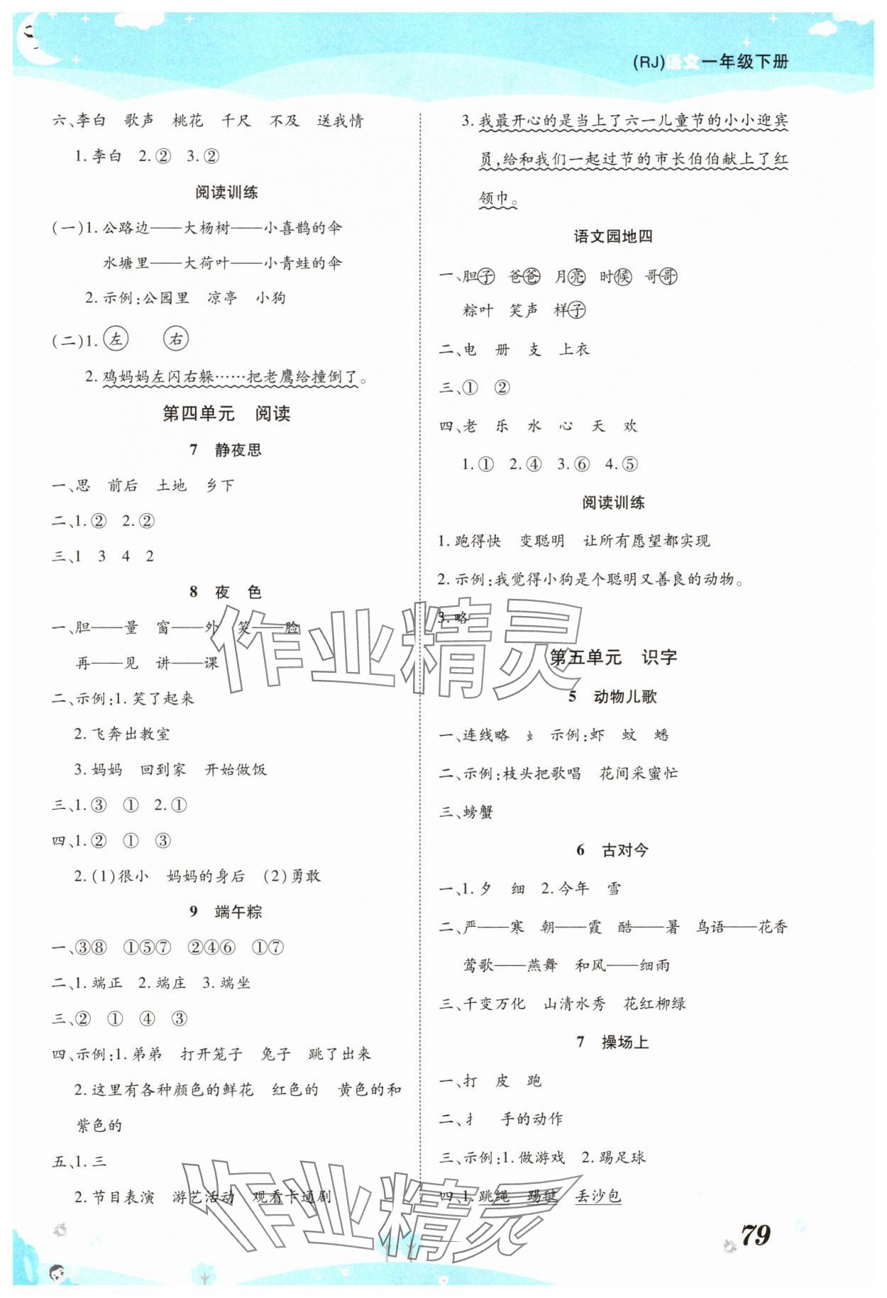 注:目前有些书本章节名称可能整理的还不是很完善,但都是按照顺序排列的,请同学们按照顺序仔细查找。练习册 2025年黄冈课课练一年级语文下册人教版 答案主要是用来给同学们做完题方便对答案用的,请勿直接抄袭。