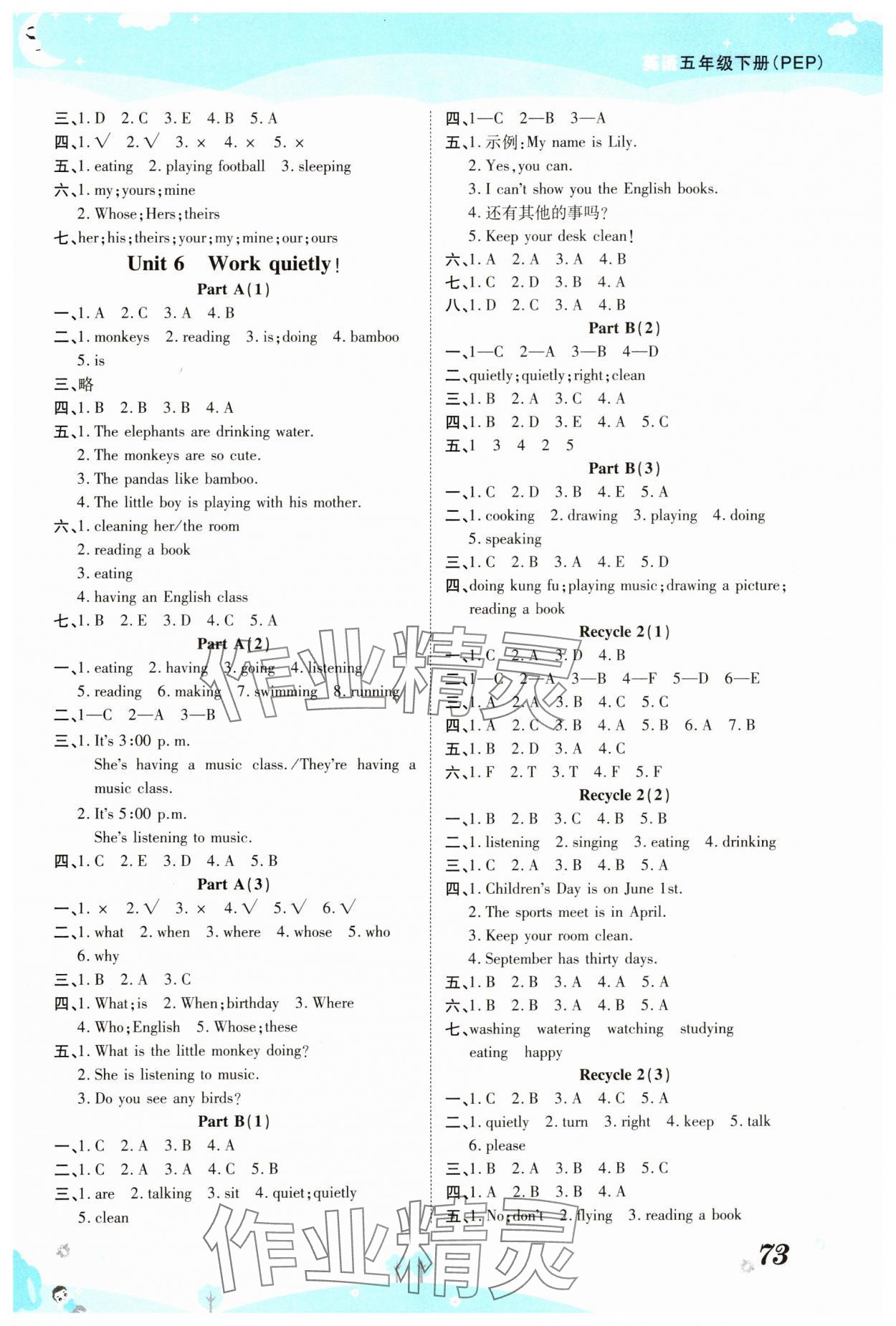 注:目前有些书本章节名称可能整理的还不是很完善,但都是按照顺序排列的,请同学们按照顺序仔细查找。练习册 2025年黄冈课课练五年级英语下册人教版 答案主要是用来给同学们做完题方便对答案用的,请勿直接抄袭。