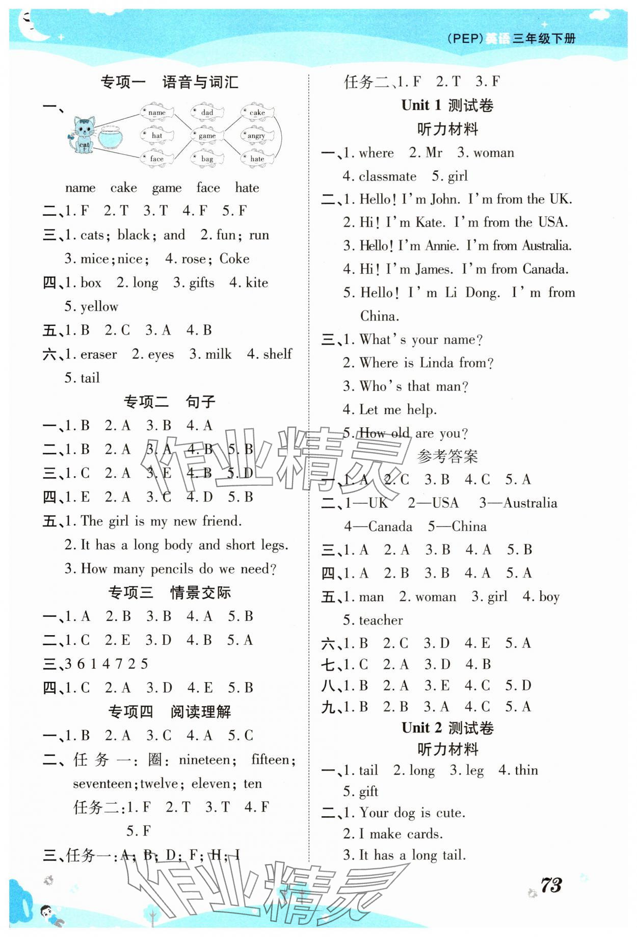注:目前有些书本章节名称可能整理的还不是很完善,但都是按照顺序排列的,请同学们按照顺序仔细查找。练习册 2025年黄冈课课练三年级英语下册人教版 答案主要是用来给同学们做完题方便对答案用的,请勿直接抄袭。