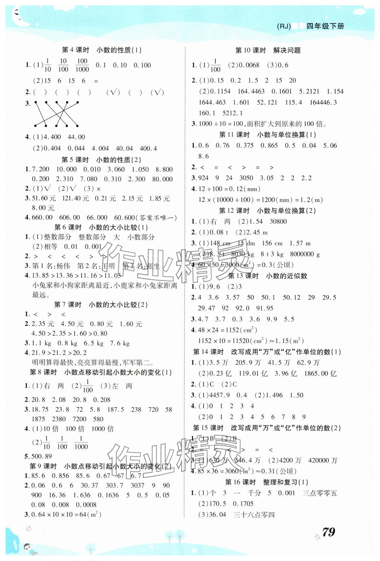 注:目前有些书本章节名称可能整理的还不是很完善,但都是按照顺序排列的,请同学们按照顺序仔细查找。练习册 2025年黄冈课课练四年级数学下册人教版 答案主要是用来给同学们做完题方便对答案用的,请勿直接抄袭。