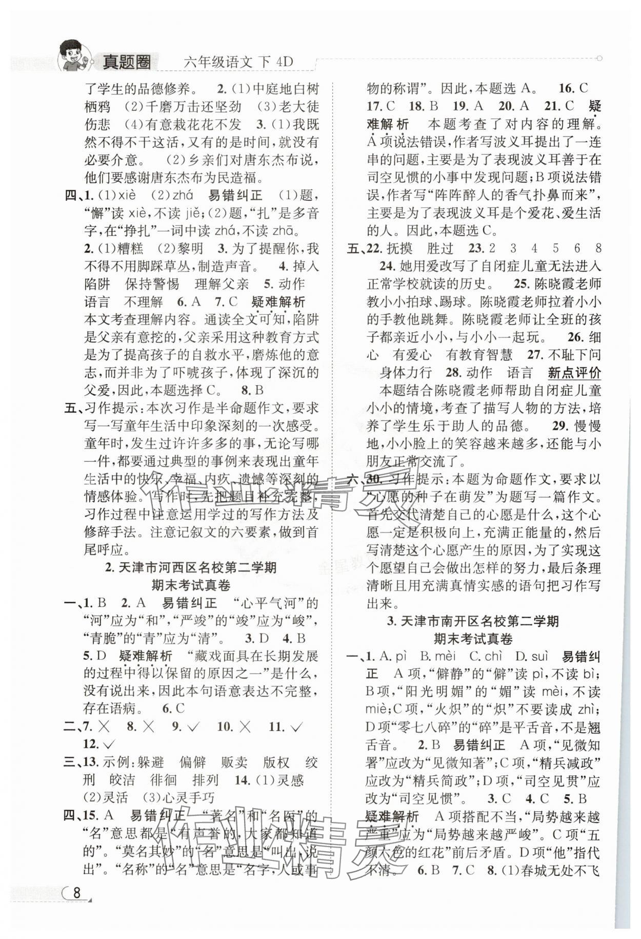 注:目前有些书本章节名称可能整理的还不是很完善,但都是按照顺序排列的,请同学们按照顺序仔细查找。练习册 2025年真题圈天津市小学考试真卷三步练六年级语文下册人教版 答案主要是用来给同学们做完题方便对答案用的,请勿直接抄袭。