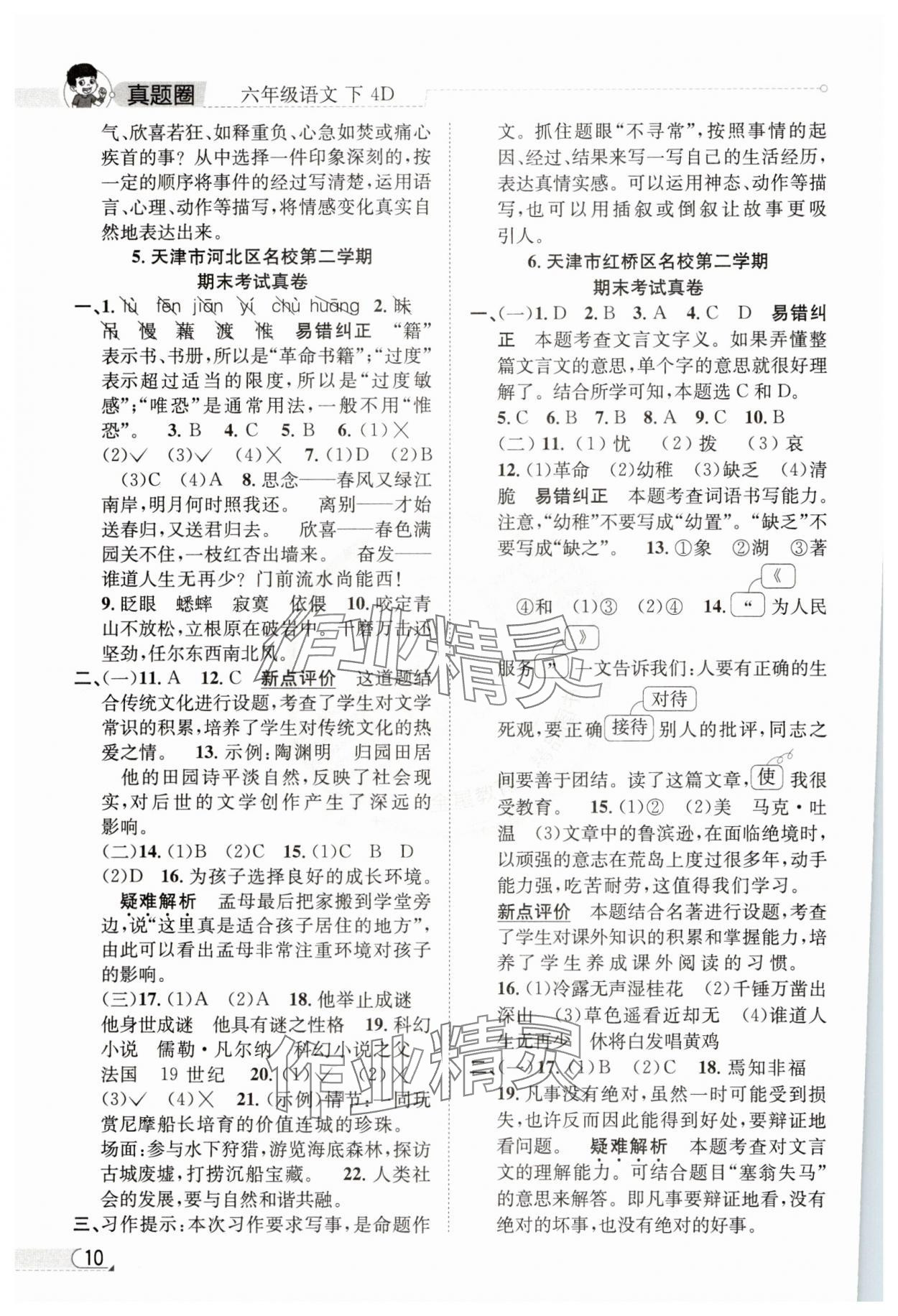 2025年真题圈天津市小学考试真卷三步练六年级语文下册人教版