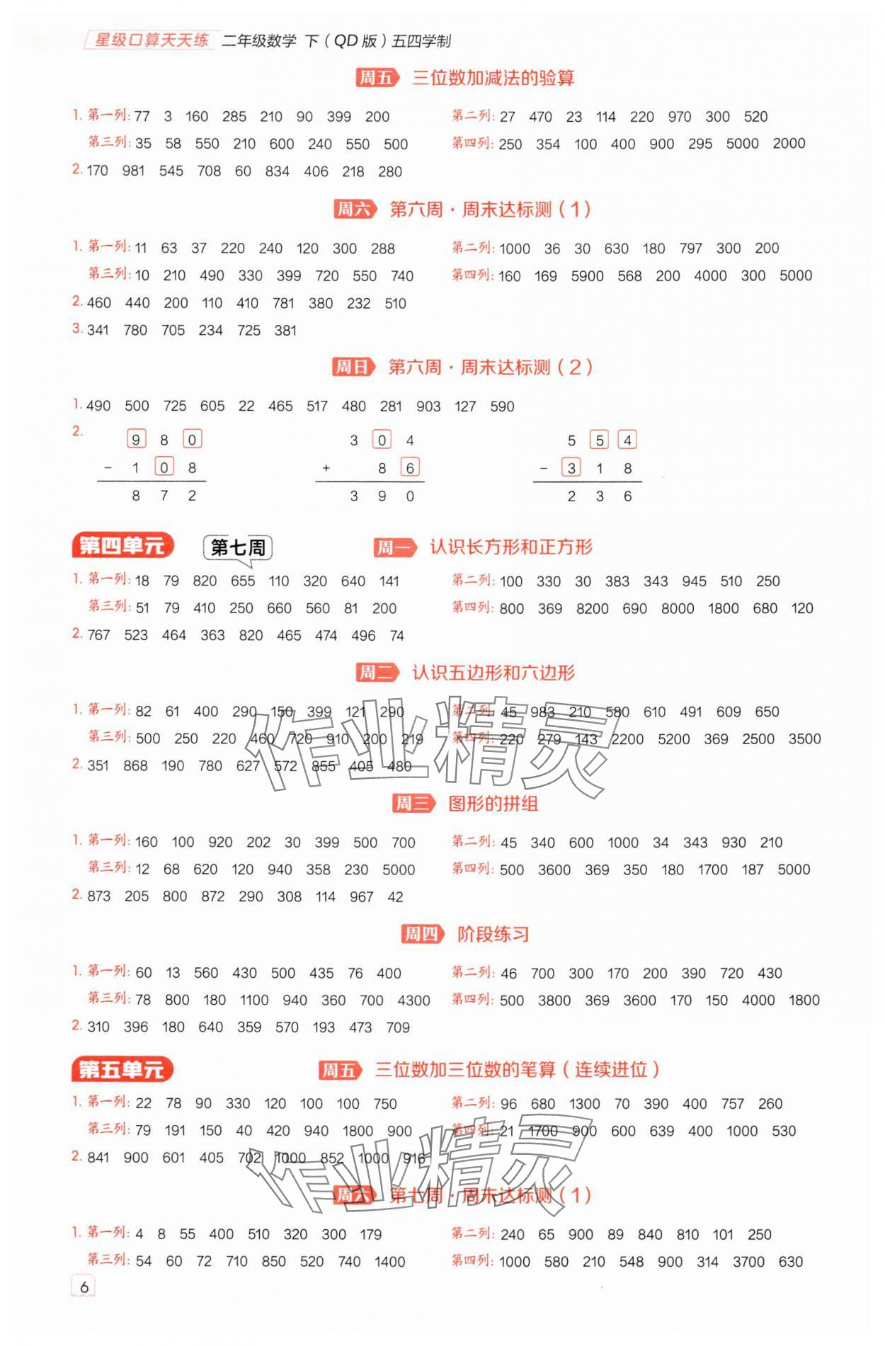 2025年星级口算天天练二年级数学下册青岛版五四制