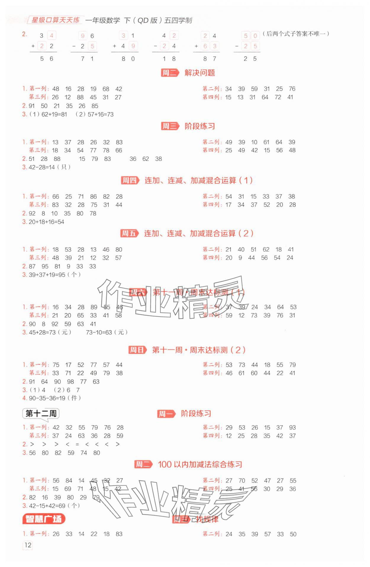 注:目前有些书本章节名称可能整理的还不是很完善,但都是按照顺序排列的,请同学们按照顺序仔细查找。练习册 2025年星级口算天天练一年级数学下册青岛版五四制 答案主要是用来给同学们做完题方便对答案用的,请勿直接抄袭。