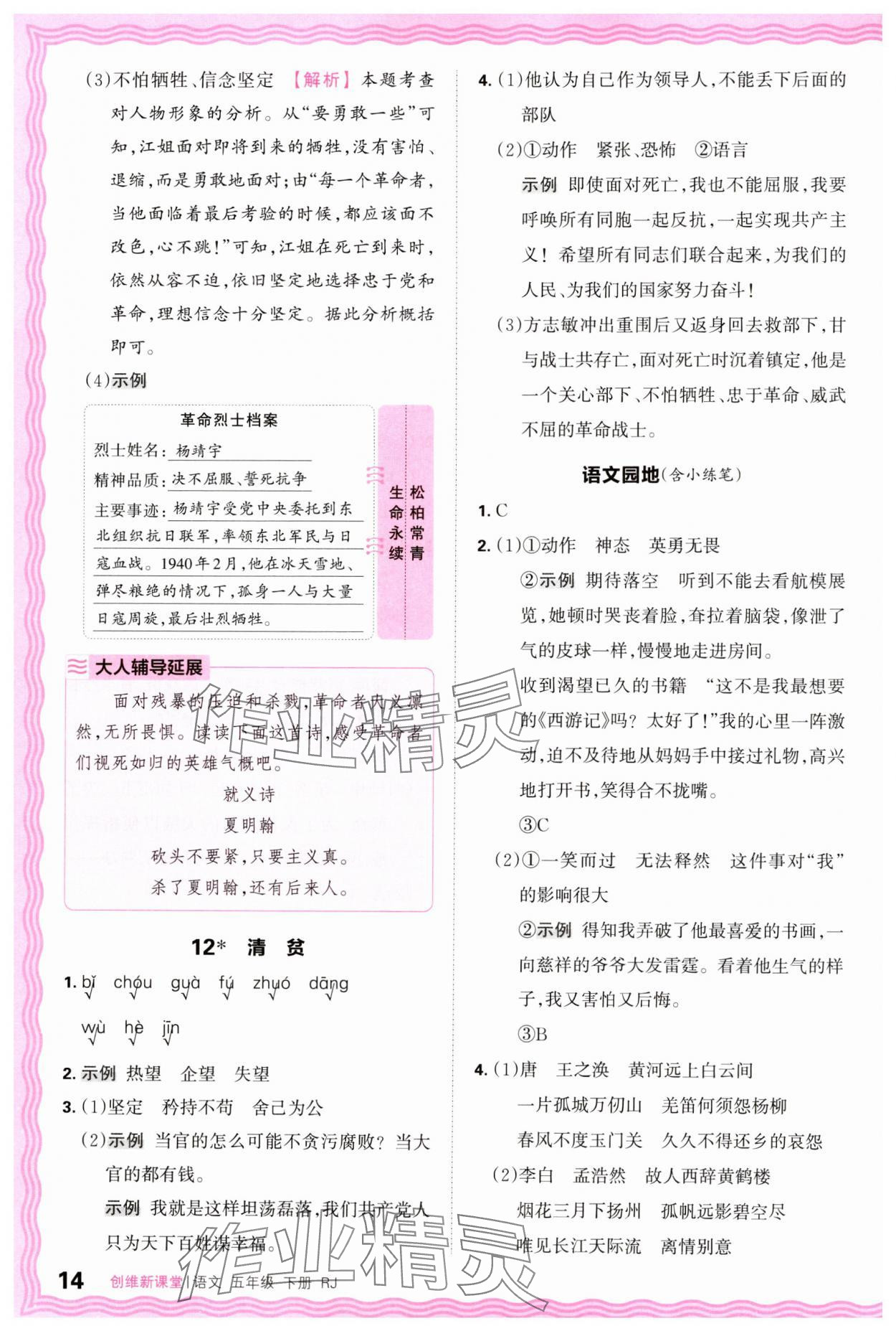 注:目前有些书本章节名称可能整理的还不是很完善,但都是按照顺序排列的,请同学们按照顺序仔细查找。练习册 2025年创维新课堂五年级语文下册人教版 答案主要是用来给同学们做完题方便对答案用的,请勿直接抄袭。
