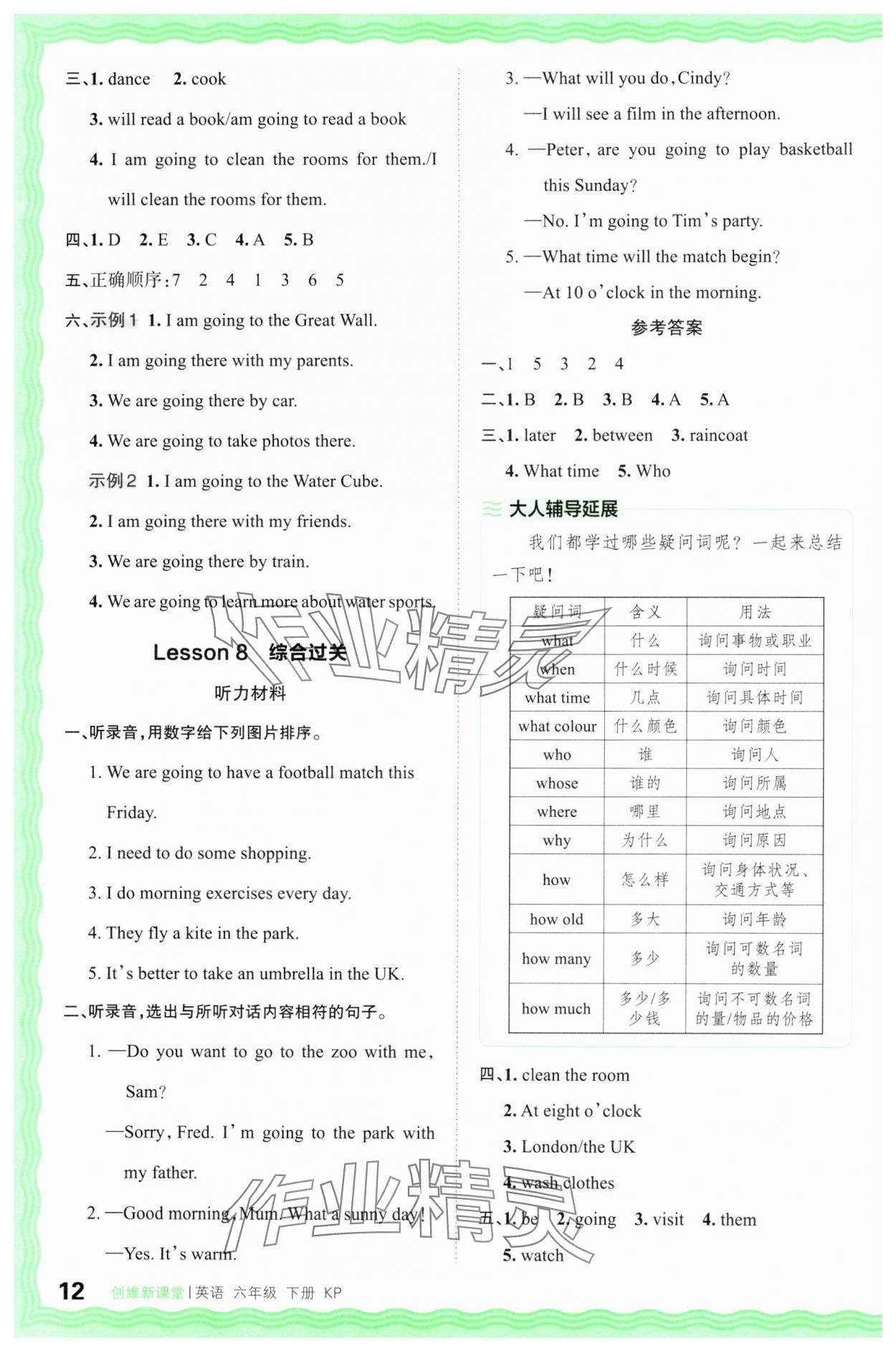 注:目前有些书本章节名称可能整理的还不是很完善,但都是按照顺序排列的,请同学们按照顺序仔细查找。练习册 2025年创维新课堂六年级英语下册科普版 答案主要是用来给同学们做完题方便对答案用的,请勿直接抄袭。