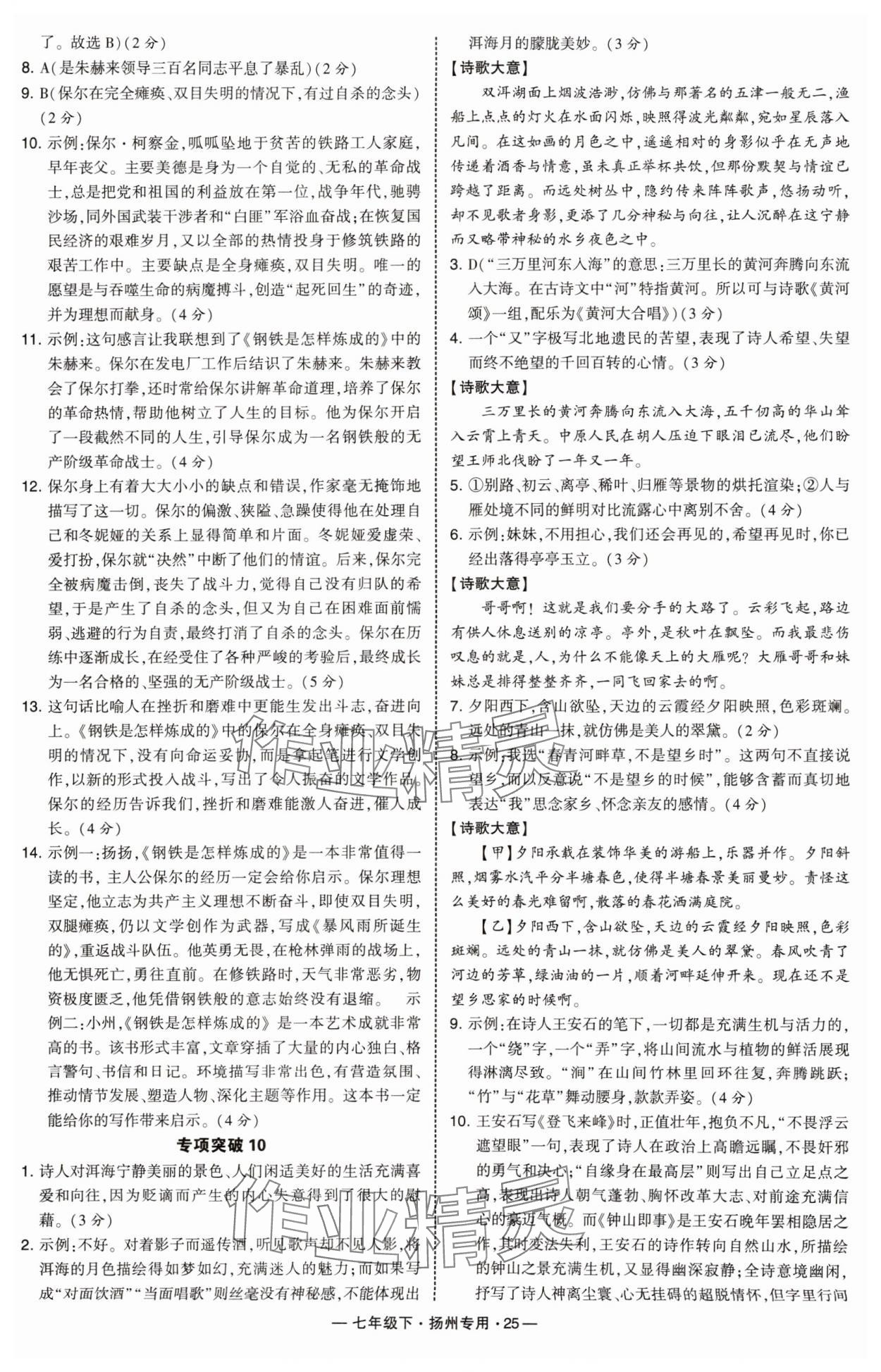 2025年学霸组合训练七年级语文下册人教版扬州专版