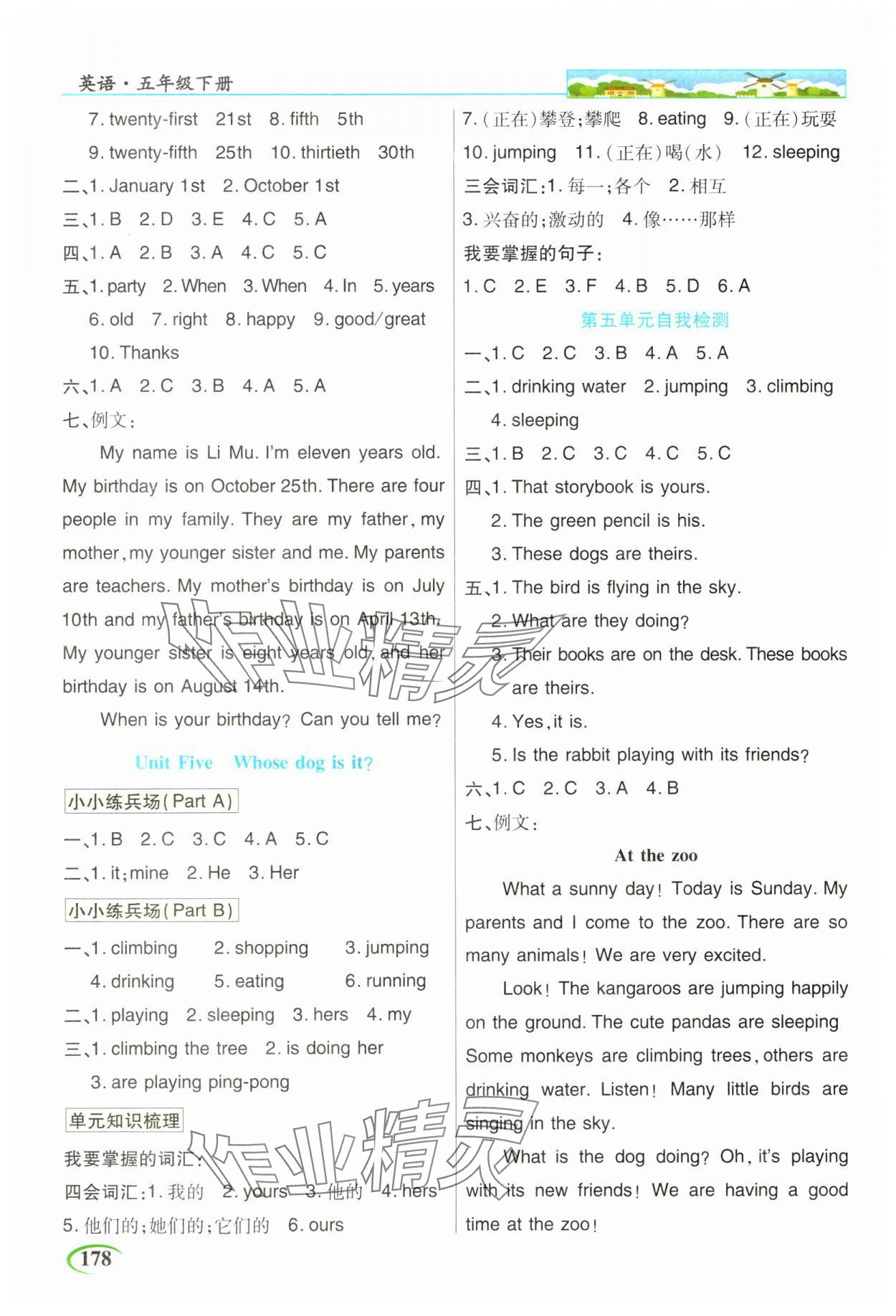 注:目前有些书本章节名称可能整理的还不是很完善,但都是按照顺序排列的,请同学们按照顺序仔细查找。练习册 2025年世纪英才英才教程五年级英语下册人教版 答案主要是用来给同学们做完题方便对答案用的,请勿直接抄袭。