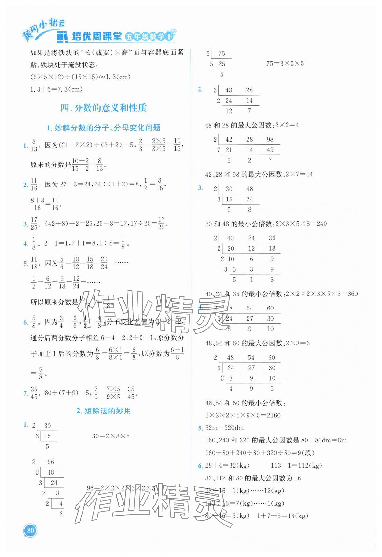 注:目前有些书本章节名称可能整理的还不是很完善,但都是按照顺序排列的,请同学们按照顺序仔细查找。练习册 2025年黄冈小状元培优周课堂五年级数学下册人教版 答案主要是用来给同学们做完题方便对答案用的,请勿直接抄袭。