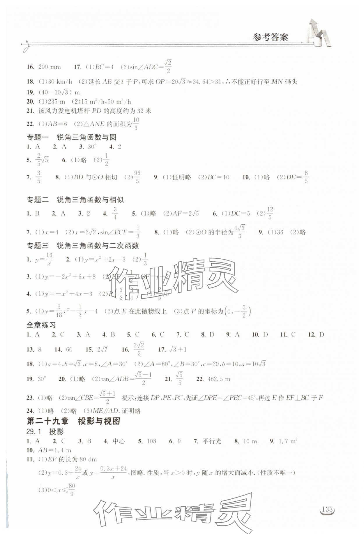 注:目前有些书本章节名称可能整理的还不是很完善,但都是按照顺序排列的,请同学们按照顺序仔细查找。练习册 2025年长江作业本同步练习册九年级数学下册人教版 答案主要是用来给同学们做完题方便对答案用的,请勿直接抄袭。