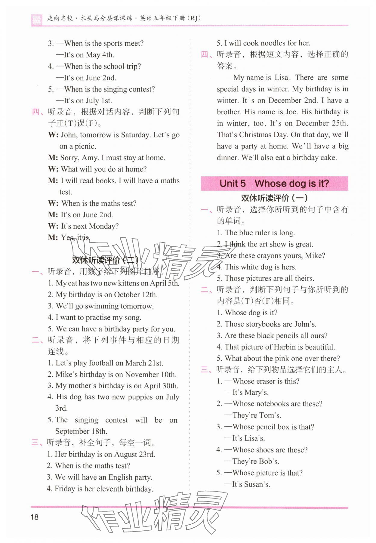注:目前有些书本章节名称可能整理的还不是很完善,但都是按照顺序排列的,请同学们按照顺序仔细查找。练习册 2025年木头马分层课课练五年级英语下册人教版 答案主要是用来给同学们做完题方便对答案用的,请勿直接抄袭。