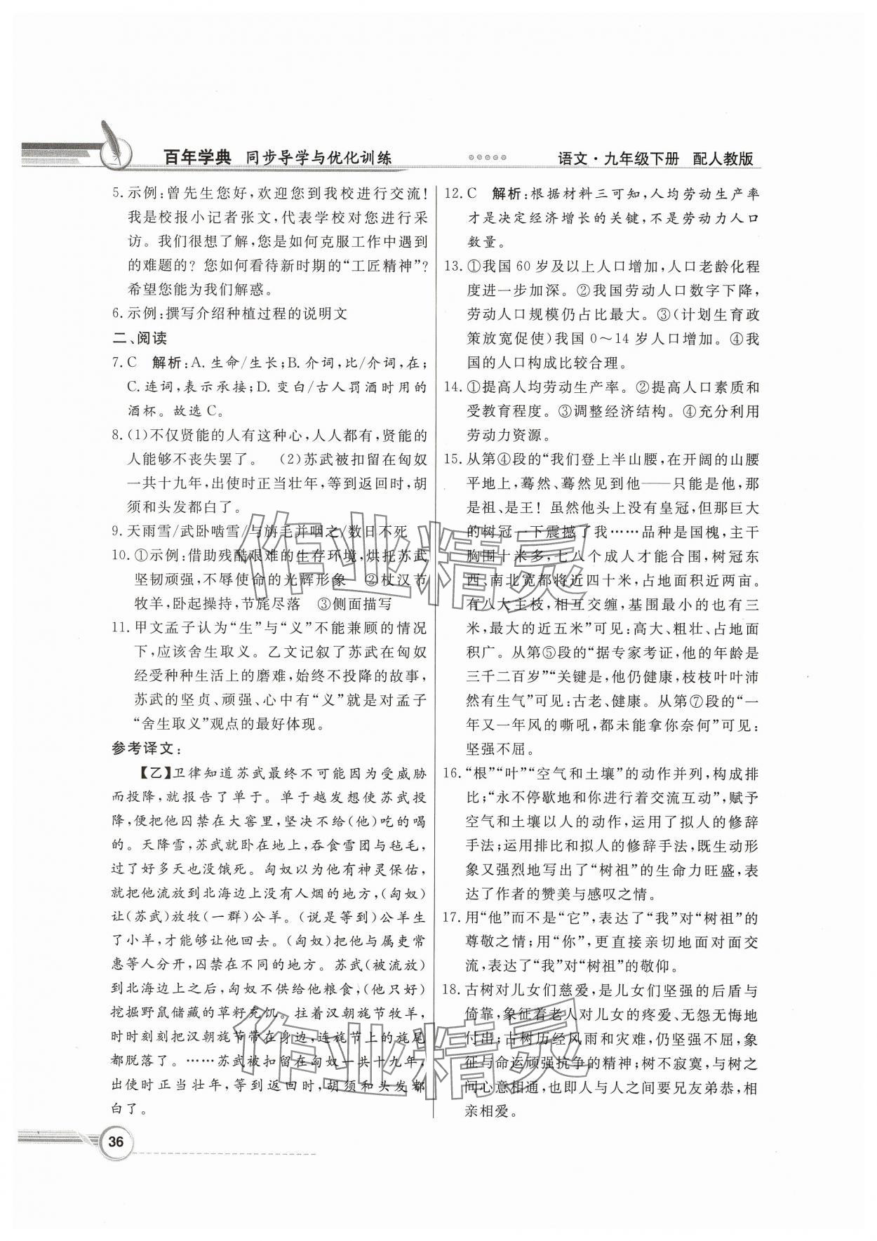 注:目前有些书本章节名称可能整理的还不是很完善,但都是按照顺序排列的,请同学们按照顺序仔细查找。练习册 2025年同步导学与优化训练九年级语文下册人教版 答案主要是用来给同学们做完题方便对答案用的,请勿直接抄袭。