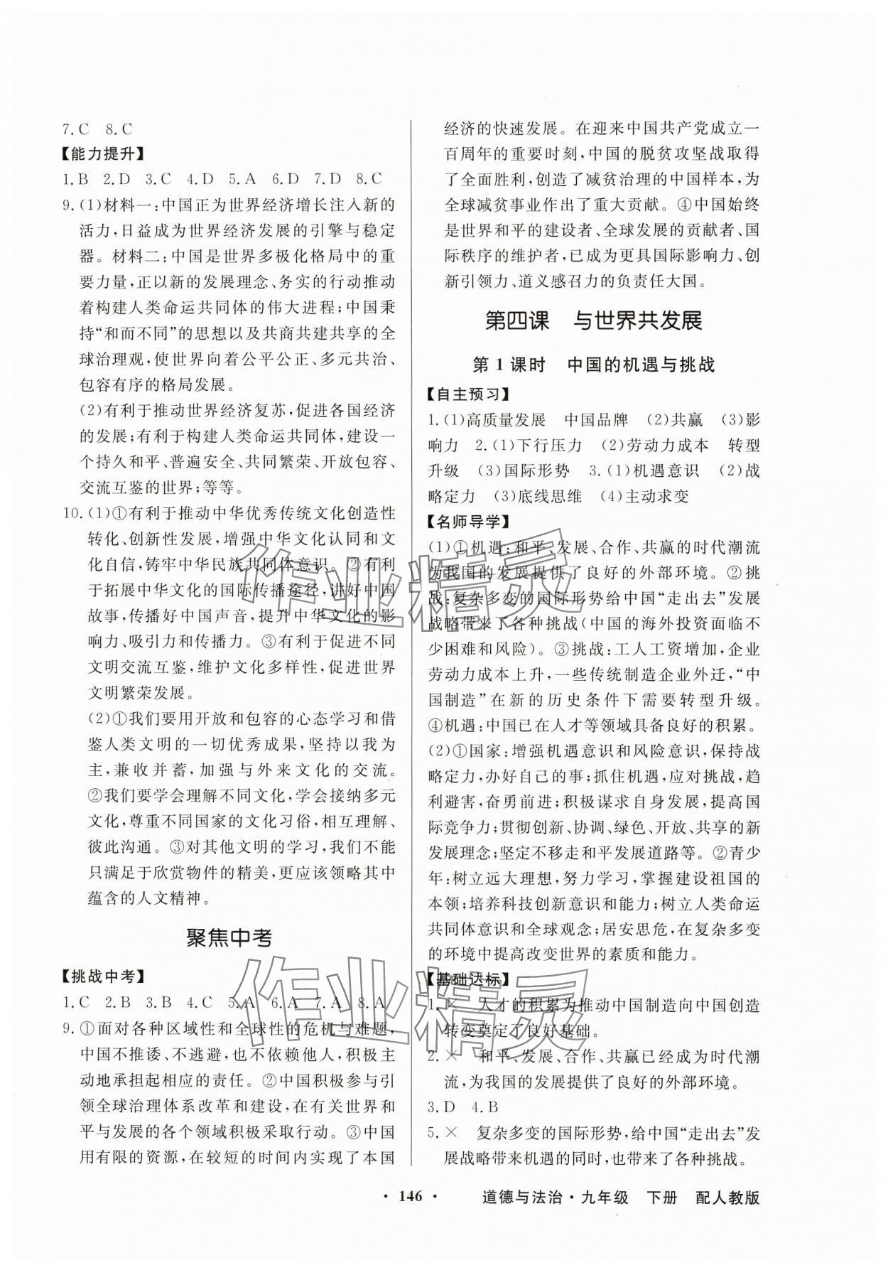 注:目前有些书本章节名称可能整理的还不是很完善,但都是按照顺序排列的,请同学们按照顺序仔细查找。练习册 2025年同步导学与优化训练九年级道德与法治下册人教版 答案主要是用来给同学们做完题方便对答案用的,请勿直接抄袭。
