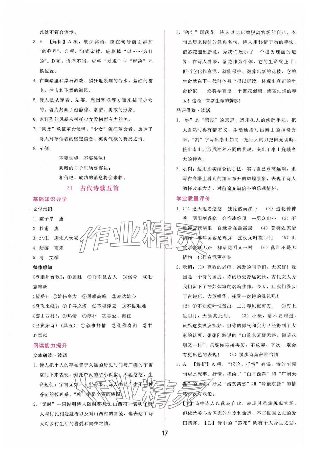 注:目前有些书本章节名称可能整理的还不是很完善,但都是按照顺序排列的,请同学们按照顺序仔细查找。练习册 2025年新课程学习辅导七年级语文下册人教版 答案主要是用来给同学们做完题方便对答案用的,请勿直接抄袭。