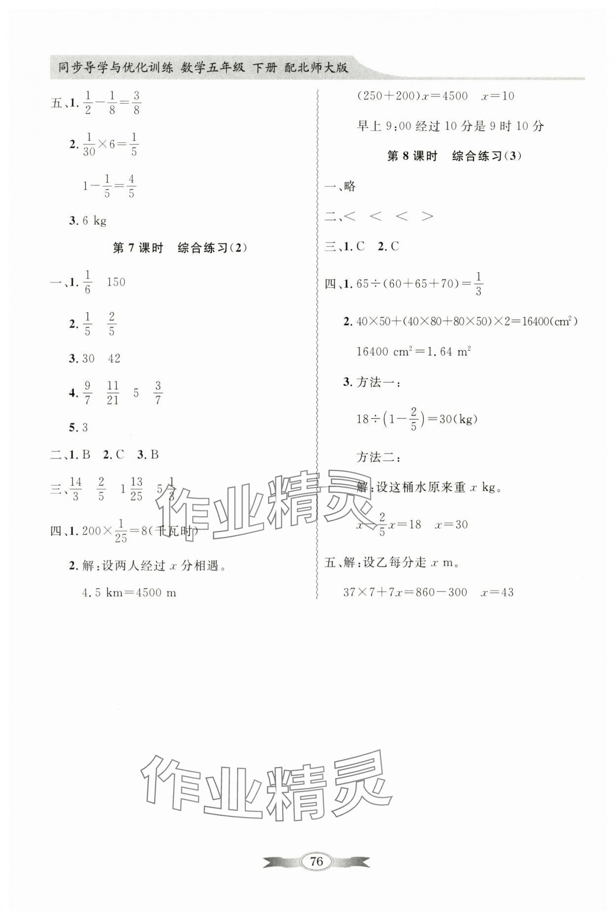 注:目前有些书本章节名称可能整理的还不是很完善,但都是按照顺序排列的,请同学们按照顺序仔细查找。练习册 2025年同步导学与优化训练五年级数学下册北师大版 答案主要是用来给同学们做完题方便对答案用的,请勿直接抄袭。