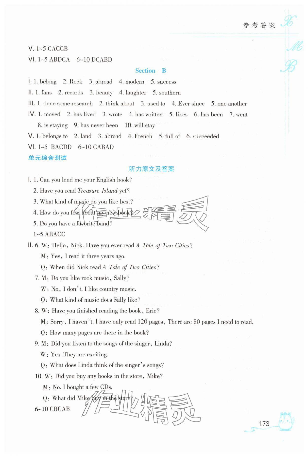 注:目前有些书本章节名称可能整理的还不是很完善,但都是按照顺序排列的,请同学们按照顺序仔细查找。练习册 2025年英语听力听说读写能力培养八年级下册 答案主要是用来给同学们做完题方便对答案用的,请勿直接抄袭。