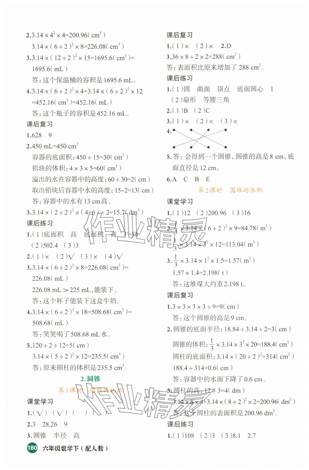 注:目前有些书本章节名称可能整理的还不是很完善,但都是按照顺序排列的,请同学们按照顺序仔细查找。练习册 2025年立体学习法思维空间六年级数学下册人教版 答案主要是用来给同学们做完题方便对答案用的,请勿直接抄袭。