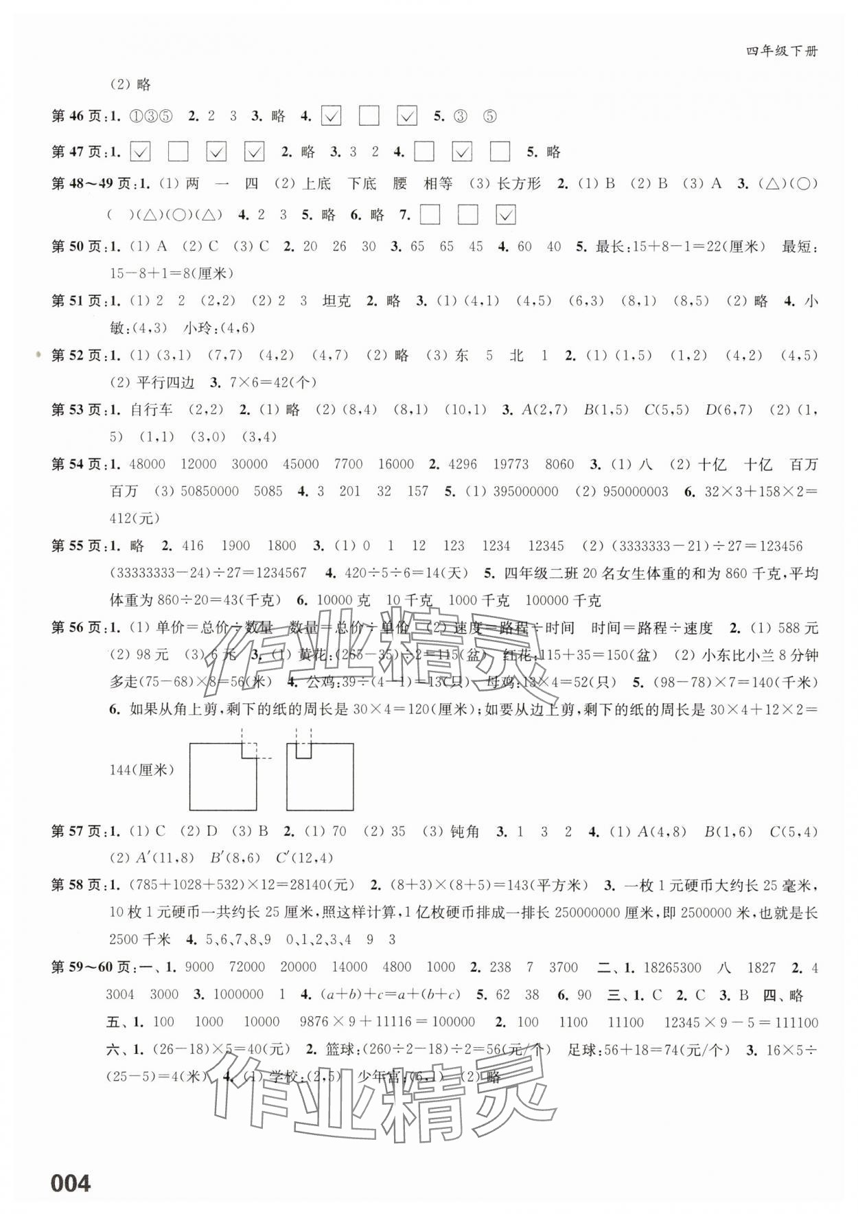 注:目前有些书本章节名称可能整理的还不是很完善,但都是按照顺序排列的,请同学们按照顺序仔细查找。练习册 2025年练习与测试四年级数学下册苏教版福建专版 答案主要是用来给同学们做完题方便对答案用的,请勿直接抄袭。
