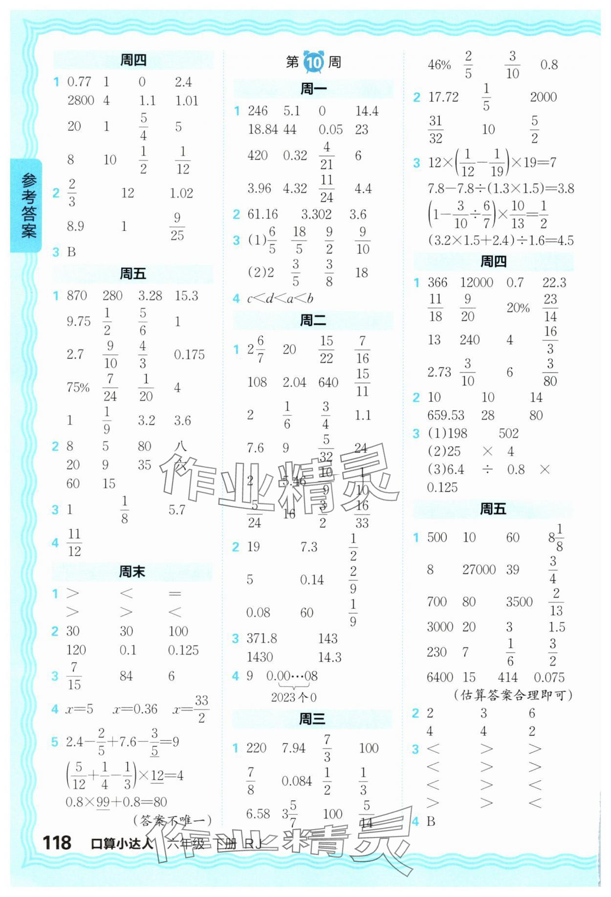 注:目前有些书本章节名称可能整理的还不是很完善,但都是按照顺序排列的,请同学们按照顺序仔细查找。练习册 2025年王朝霞口算小达人六年级数学下册人教版 答案主要是用来给同学们做完题方便对答案用的,请勿直接抄袭。