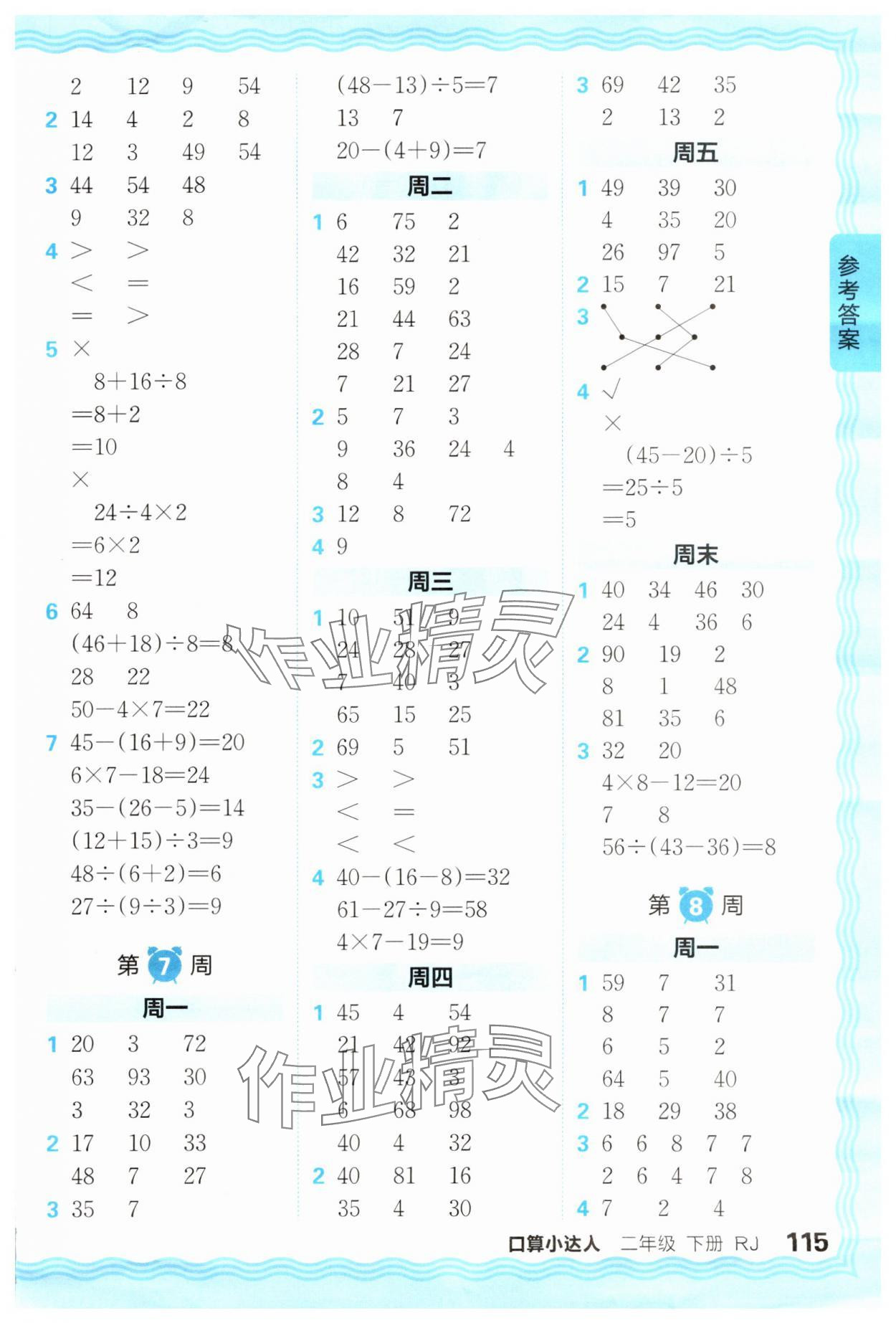 注:目前有些书本章节名称可能整理的还不是很完善,但都是按照顺序排列的,请同学们按照顺序仔细查找。练习册 2025年王朝霞口算小达人二年级数学下册人教版 答案主要是用来给同学们做完题方便对答案用的,请勿直接抄袭。