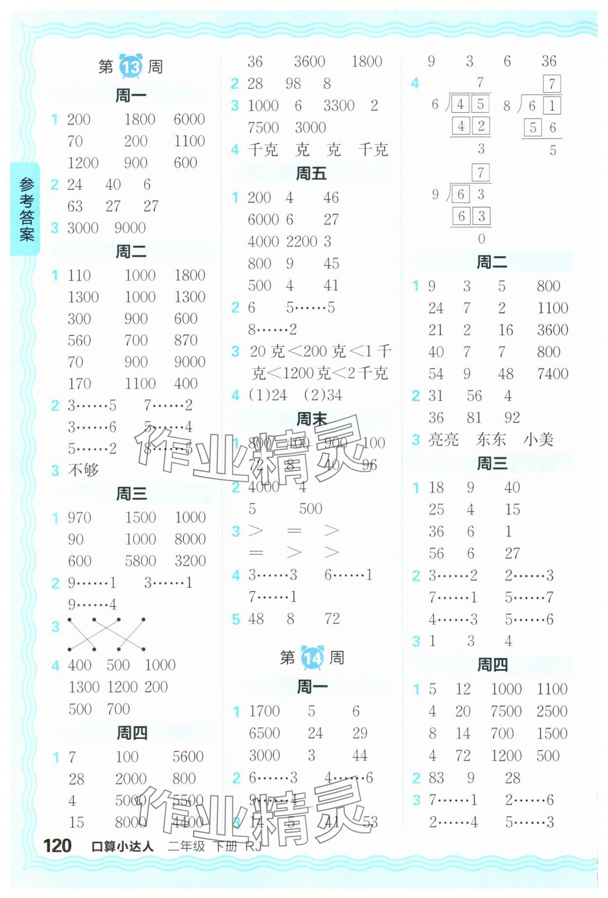 注:目前有些书本章节名称可能整理的还不是很完善,但都是按照顺序排列的,请同学们按照顺序仔细查找。练习册 2025年王朝霞口算小达人二年级数学下册人教版 答案主要是用来给同学们做完题方便对答案用的,请勿直接抄袭。