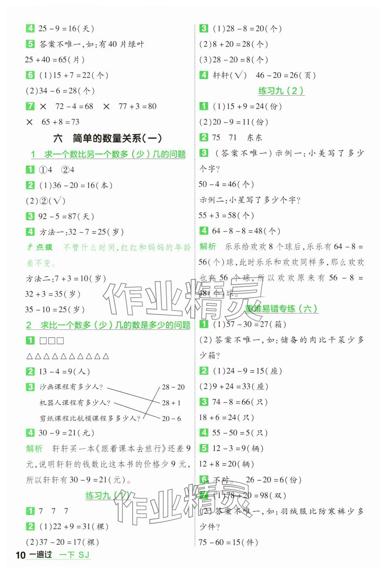 注:目前有些书本章节名称可能整理的还不是很完善,但都是按照顺序排列的,请同学们按照顺序仔细查找。练习册 年一遍过一年级数学下册苏教版 答案主要是用来给同学们做完题方便对答案用的,请勿直接抄袭。