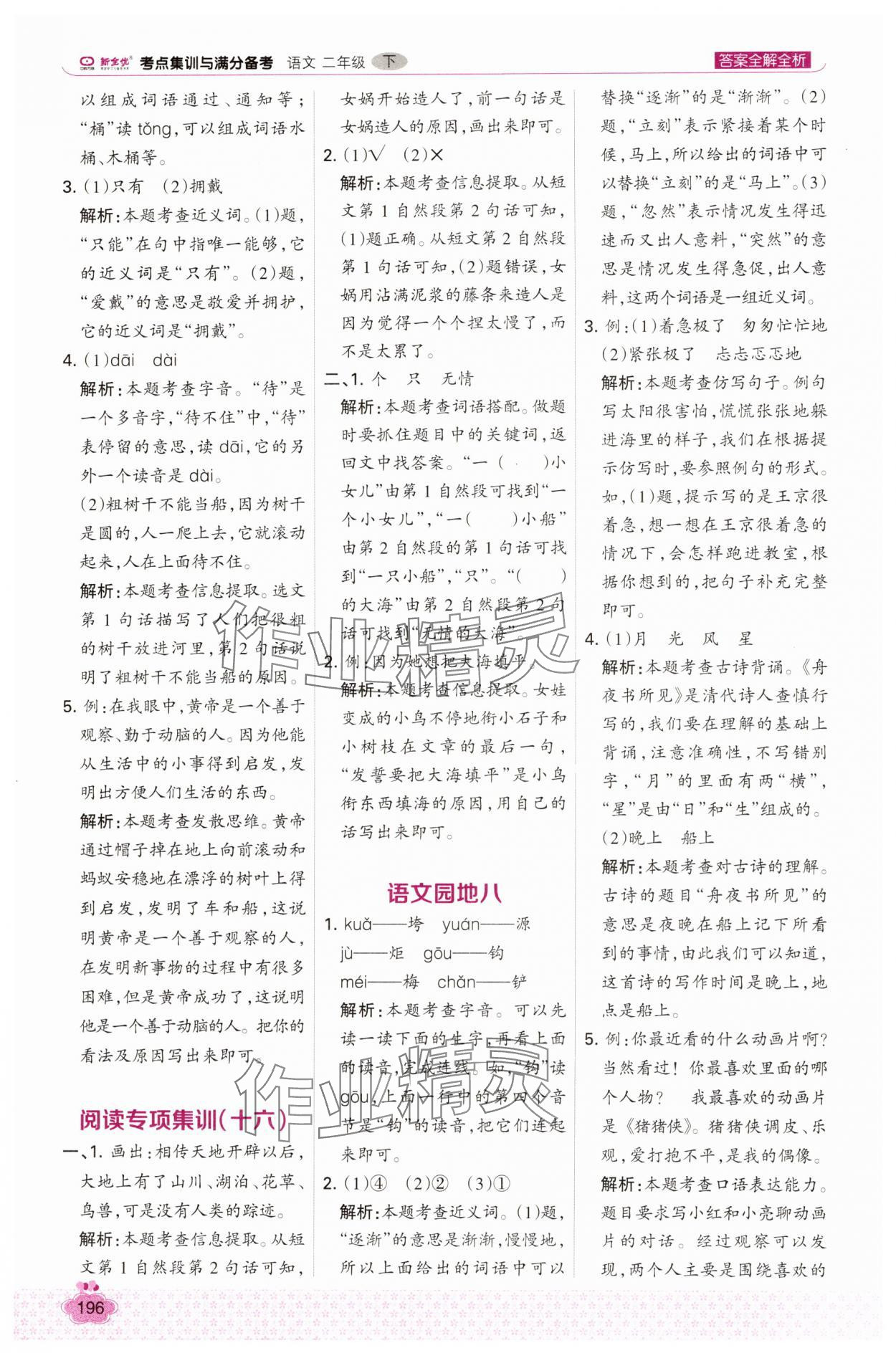 注:目前有些书本章节名称可能整理的还不是很完善,但都是按照顺序排列的,请同学们按照顺序仔细查找。练习册 2025年考点集训与满分备考二年级语文下册人教版 答案主要是用来给同学们做完题方便对答案用的,请勿直接抄袭。