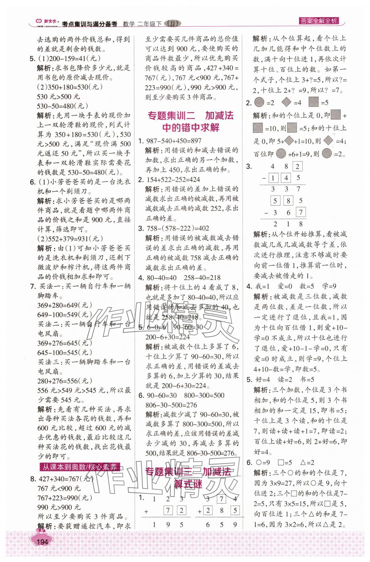 《2025年考点集训与满分备考二年级数学下册冀教版》