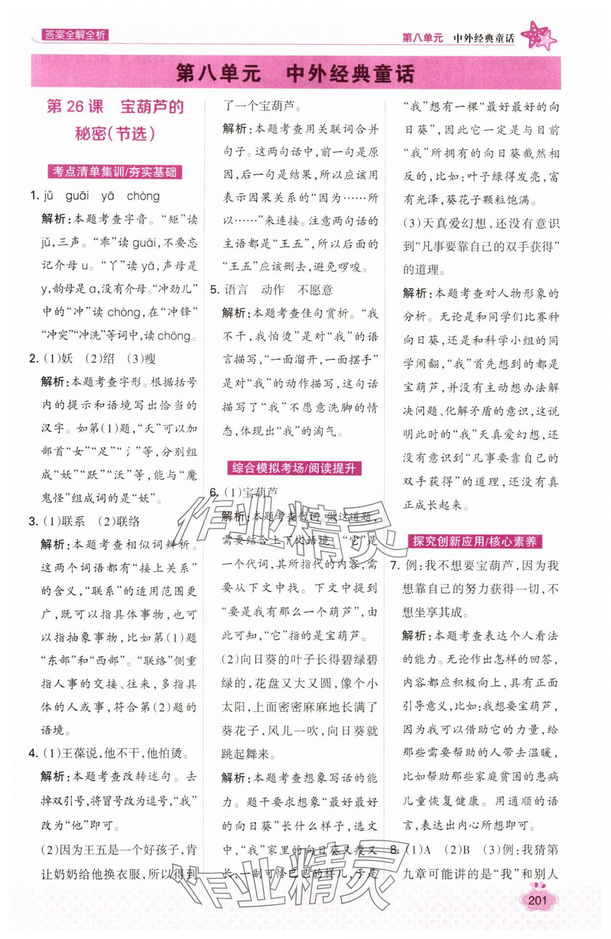注:目前有些书本章节名称可能整理的还不是很完善,但都是按照顺序排列的,请同学们按照顺序仔细查找。练习册 2025年考点集训与满分备考四年级语文下册人教版 答案主要是用来给同学们做完题方便对答案用的,请勿直接抄袭。