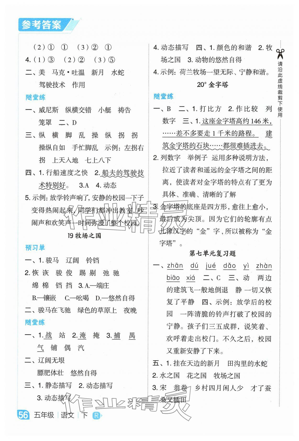 注:目前有些书本章节名称可能整理的还不是很完善,但都是按照顺序排列的,请同学们按照顺序仔细查找。练习册 2025年特高级教师点拨五年级语文下册人教版吉林专版 答案主要是用来给同学们做完题方便对答案用的,请勿直接抄袭。